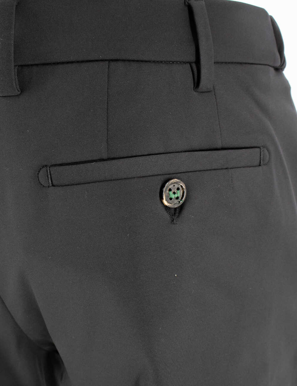 Upgrade your wardrobe with these stylish black trousers from BERWICH. Made from a blend of 74%PA and 26%EA, these trousers offer a comfortable fit and a touch of elegance with their button and zip fastening. The side and back pockets add practicality, making them a versatile choice for any occasion. Elevate your look with these classic trousers.