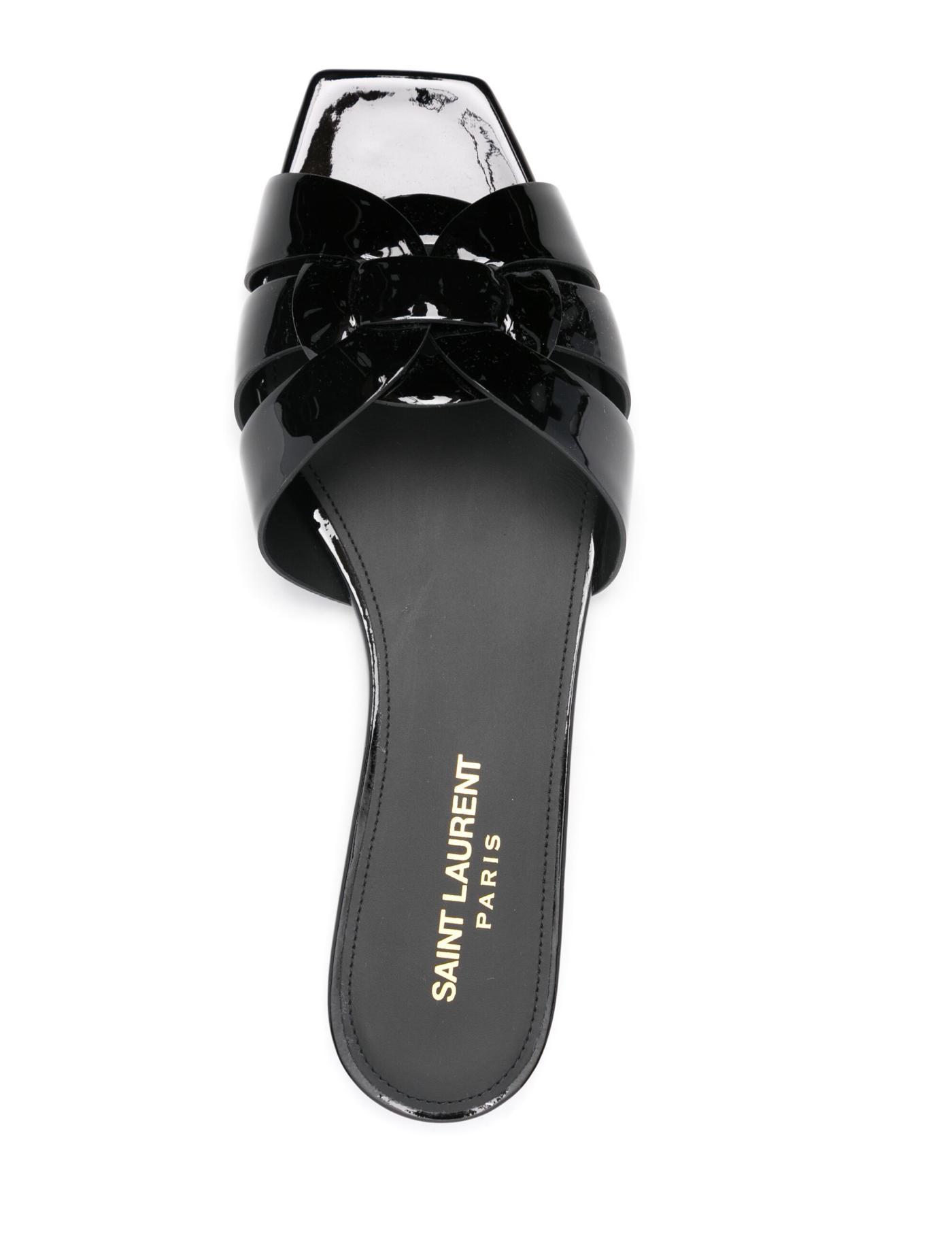 Boasting a patent leather design, these Saint Laurent sandals offer a minimalist aesthetic thanks to a tonal colourway. This allows the pair's construction to take the focus - a square toe adds a contemporary touch here.