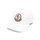 white cotton appliqué logo curved peak six-panel construction eyelet detailing fabric-covered button at the crown adjustable fit slip-on style
