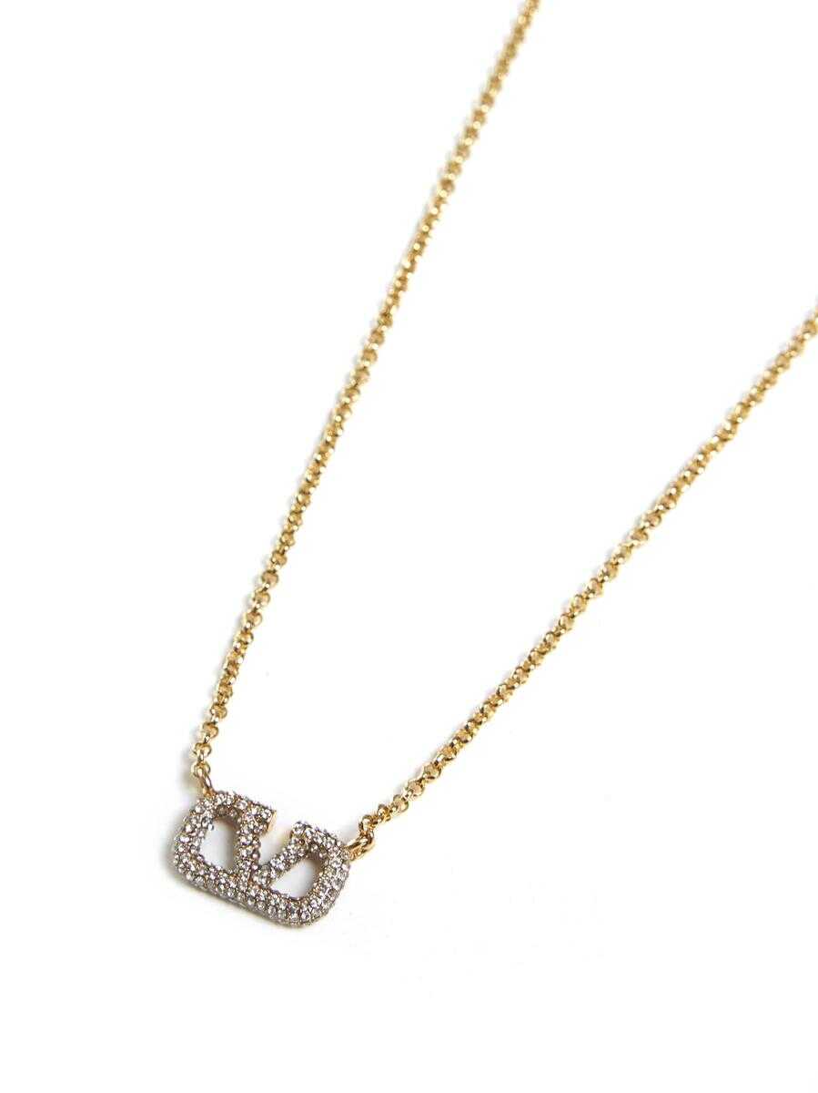 Valentino Garavani’s 18K gold-plated metal chain necklace featuring VLogo Signature pendant with Swarovski crystals, adjustable lobster clasp fastening, logo plaque and VLogo charm.