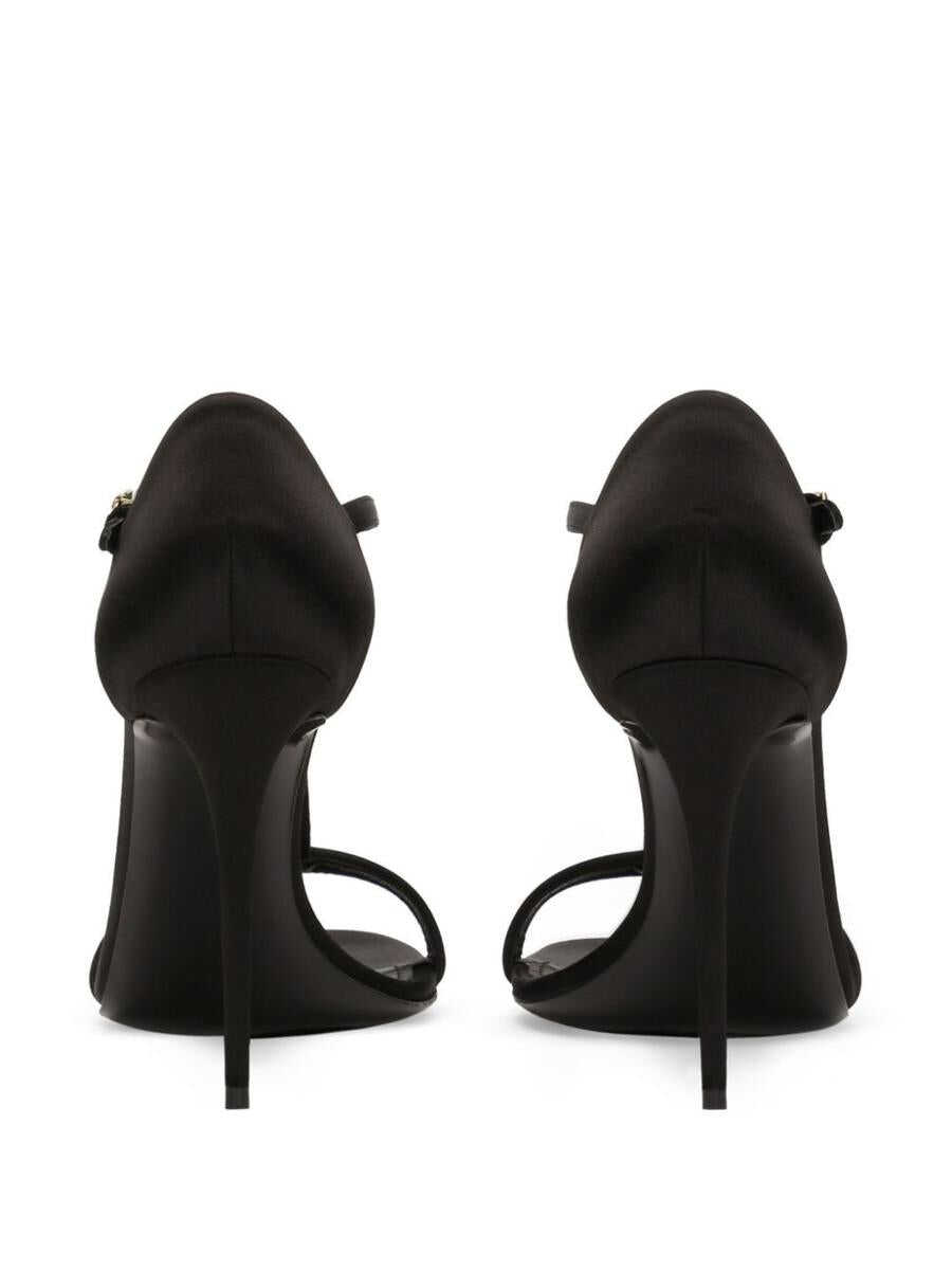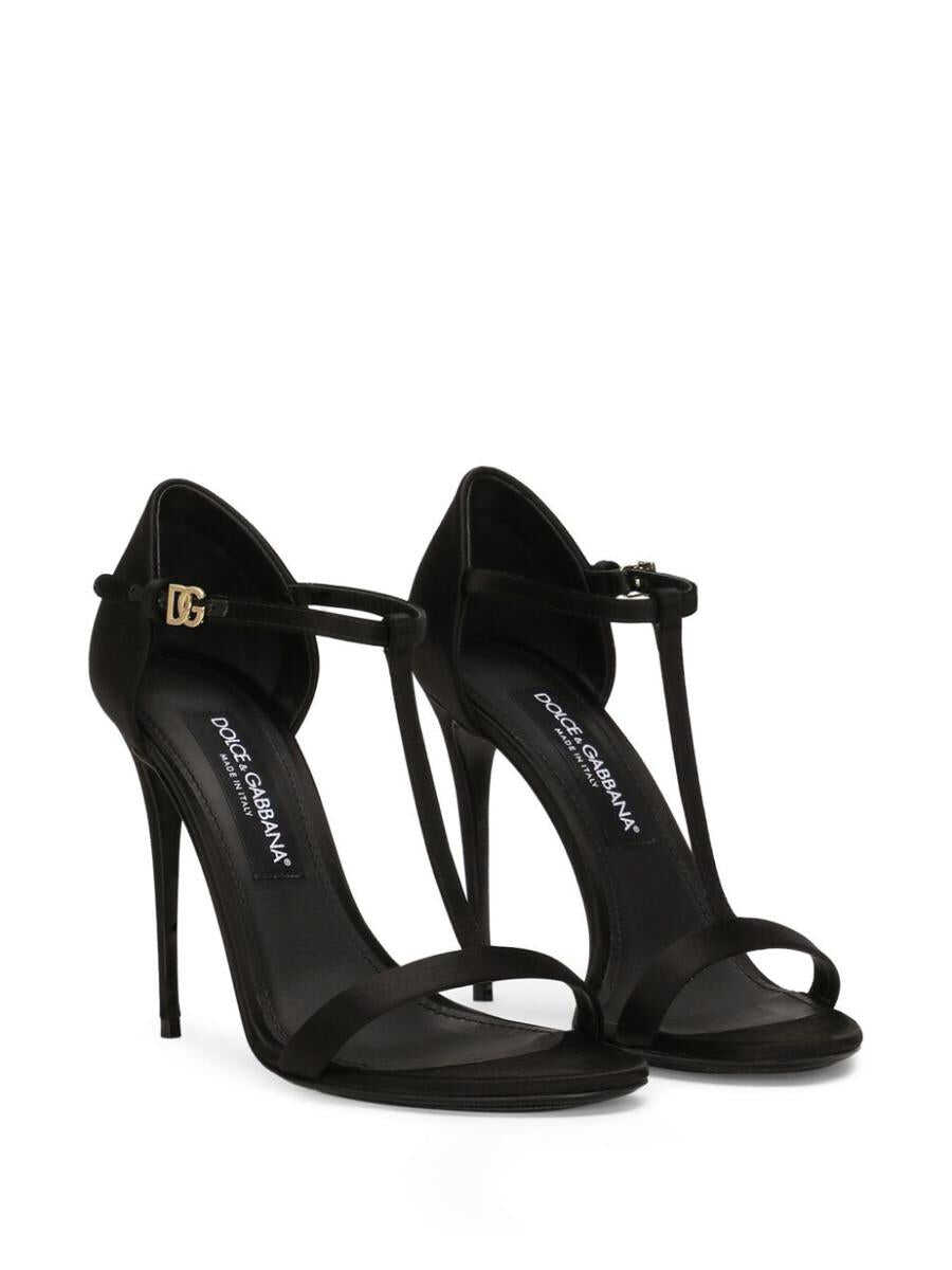 black satin finish T-bar strap buckle-fastening ankle strap 105mm high stiletto heel logo plaque almond open toe branded leather insole leather sole