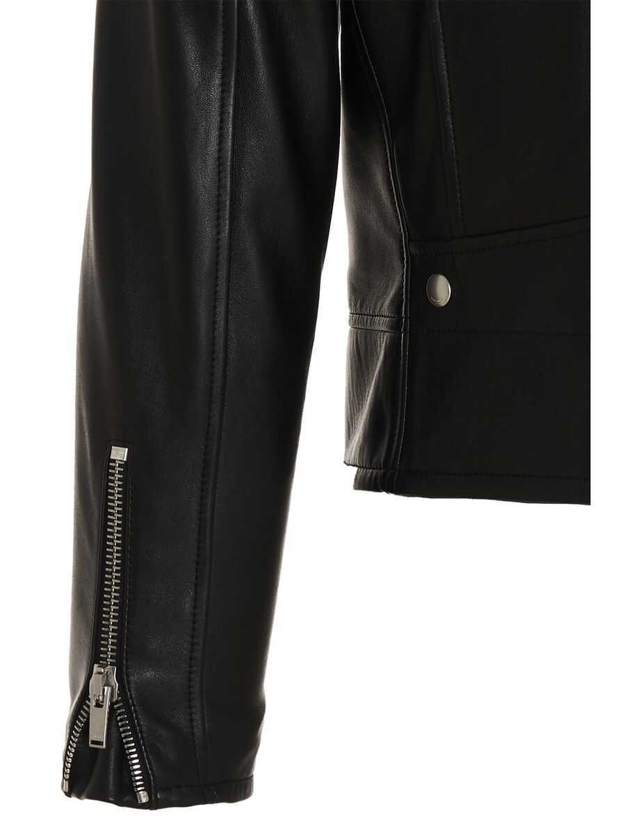 Saint Laurent's biker jacket crafted in black nappa leather. Featuring biker lapel, off-center zip closure, multiple pockets, long slevees and zipped cuffs. Lined interior.
