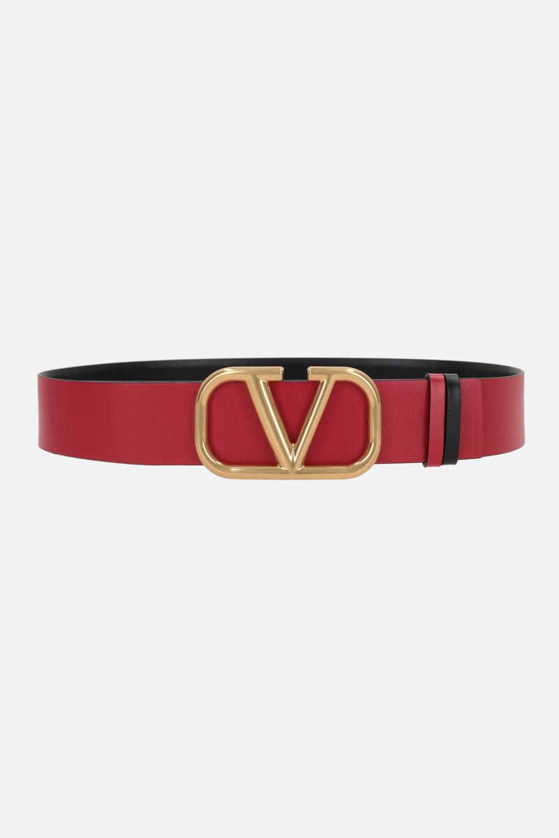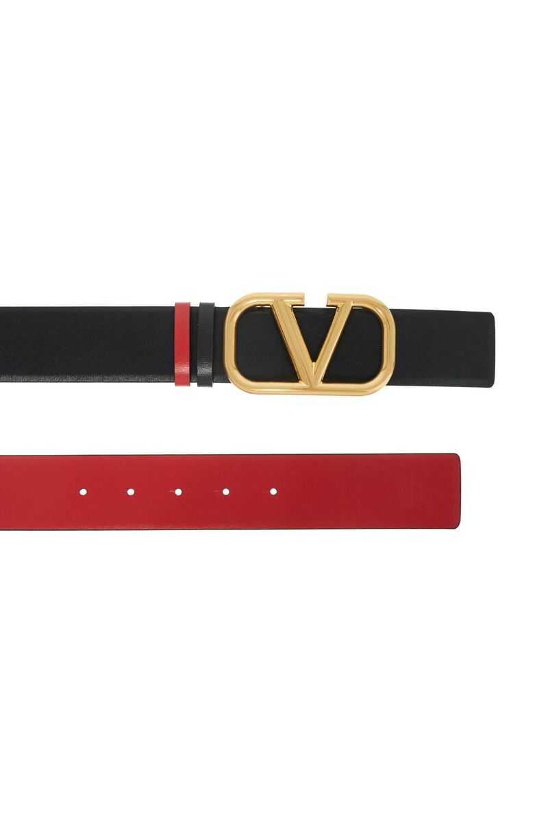 Valentino Garavani's reversible belt crafted in black smooth leather on one side and bright red on the other. Featuring adjustable closure with antique gold-tone metal VLogo Signature buckle.