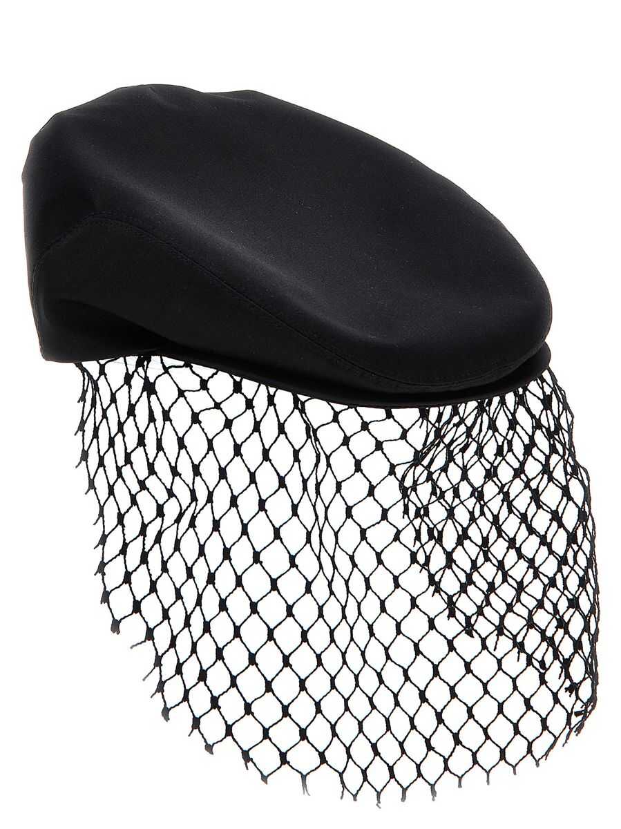 Silk satin cap with visor. Silk satin inner lining. Internally applied logo. Applied lace fabric flap.
