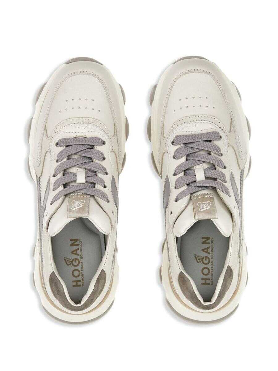 ivory white/grey panelled design suede panels debossed logo to the side perforated detailing decorative stitching pull-tab at the tongue perforated toebox round toe front lace-up fastening branded insole chunky rubber sole