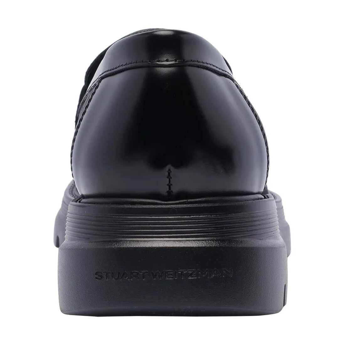 Stuart Weitzman moccasin with leather upper and elastic inserts. It is made with a significant sculpted rubber sole for optimal traction. Characterized by a padded insole and a lightweight and innovative structure, it ensures the constant practicality of a sneaker and the relaxed refinement of a moccasin.
