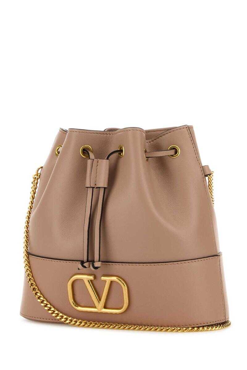Powder pink leather bucket bag Width: 20 cm Height: 18 cm Depth: 8,5 cm Shoulder strap length: 56 cm