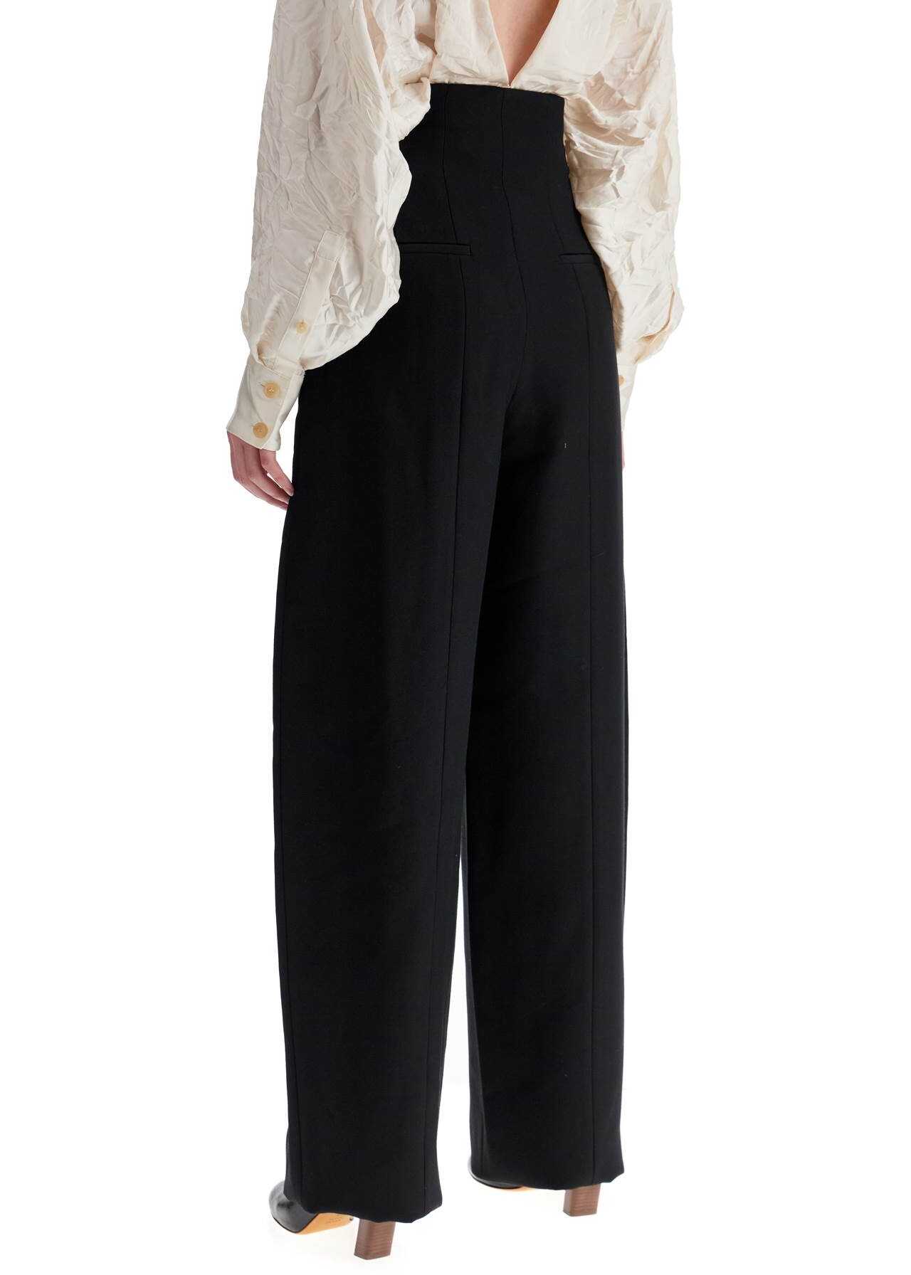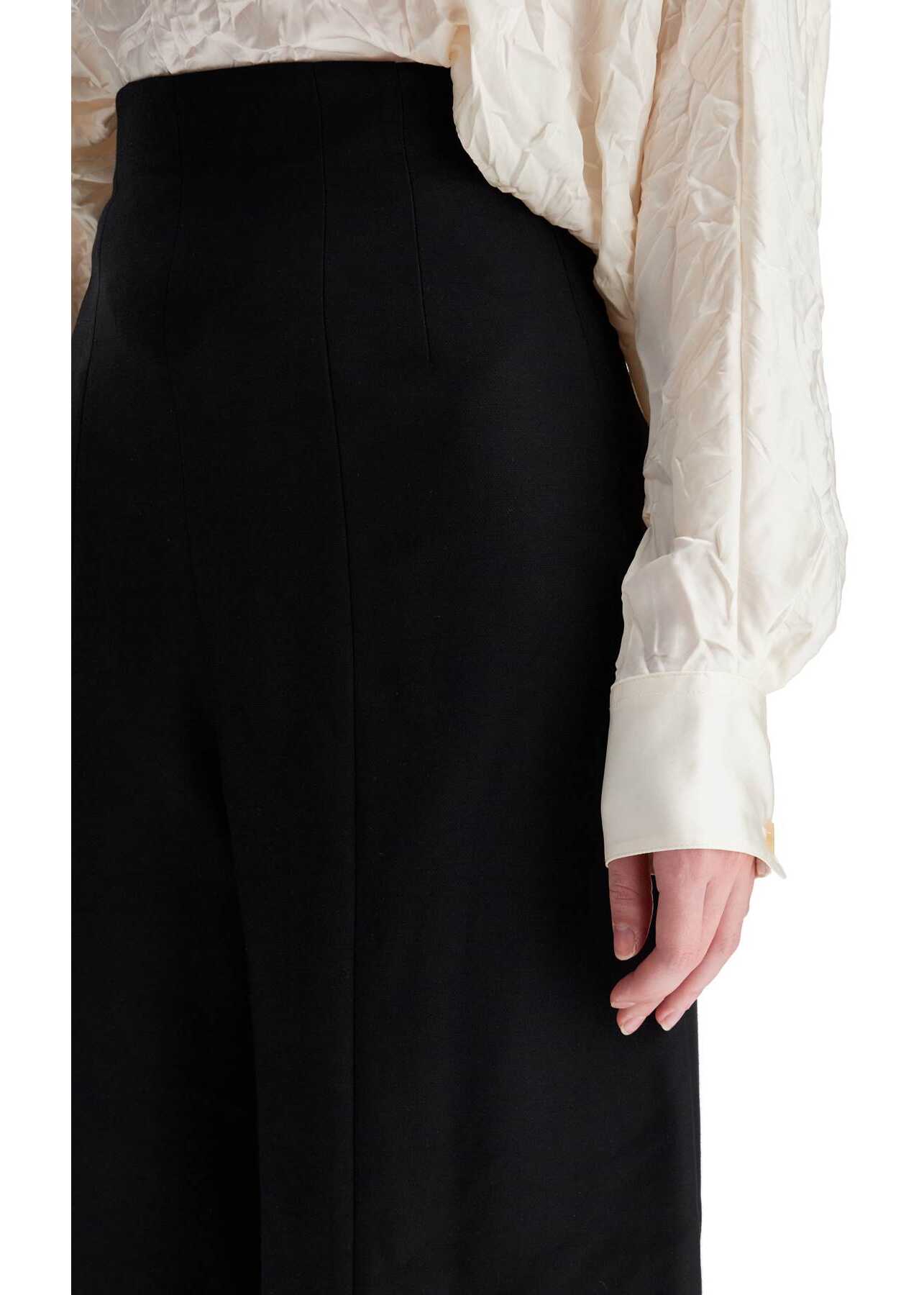 The Lennerd pants by Khaite are made of a compact blend of viscose fabric, with a wide and tapered silhouette enhanced by a high waist. They feature an invisible side zip closure and are completed by back welt pockets. The model is 177 cm tall and wears a US size 2.