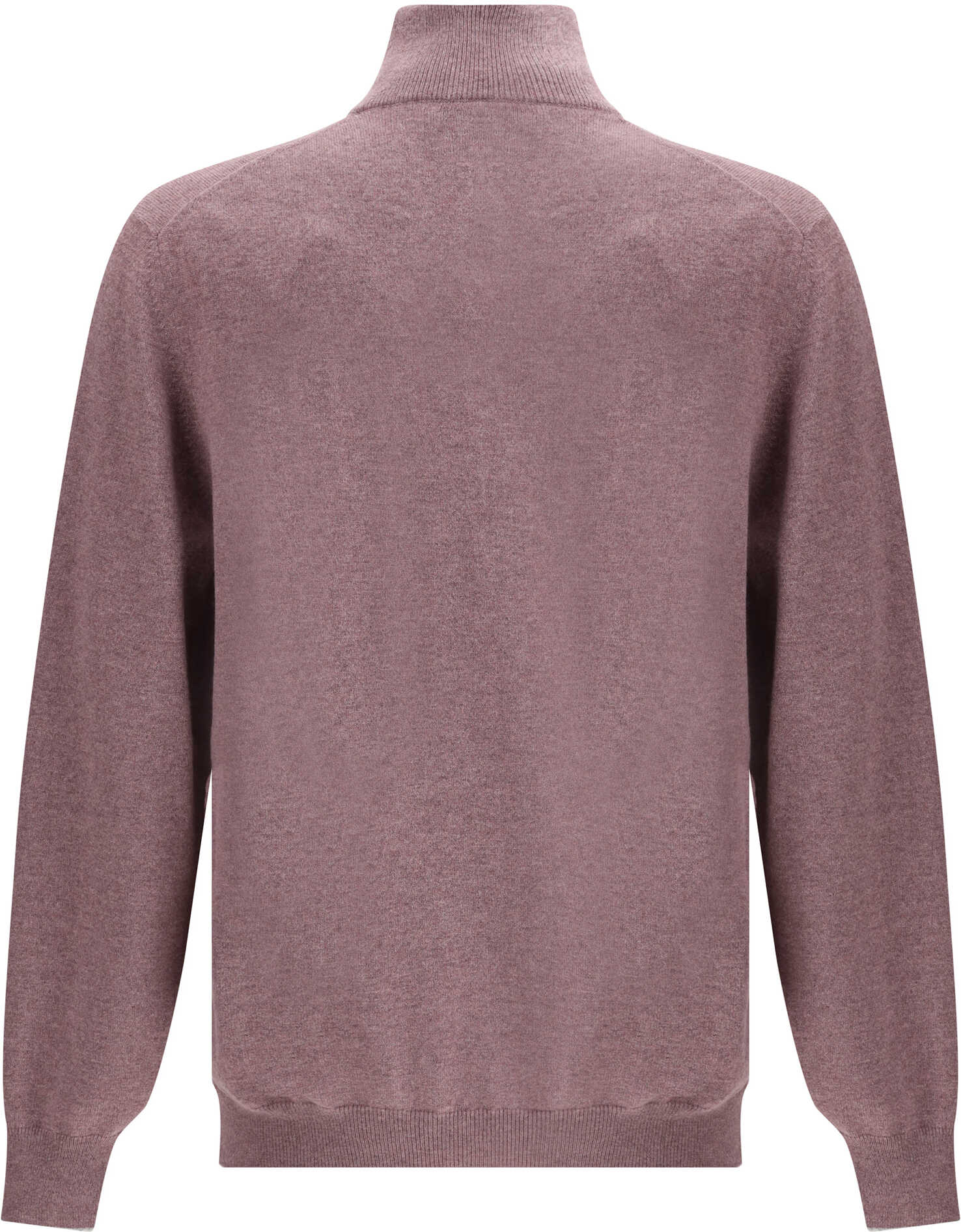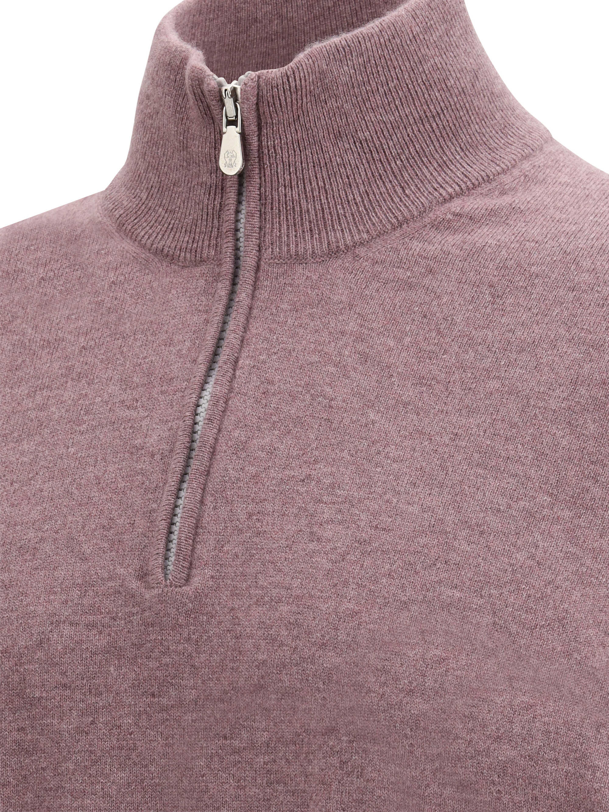 Cashmere Sweater by Brunello Cucinelli, high collar, short zip front closure, long sleeves and straight hem.
