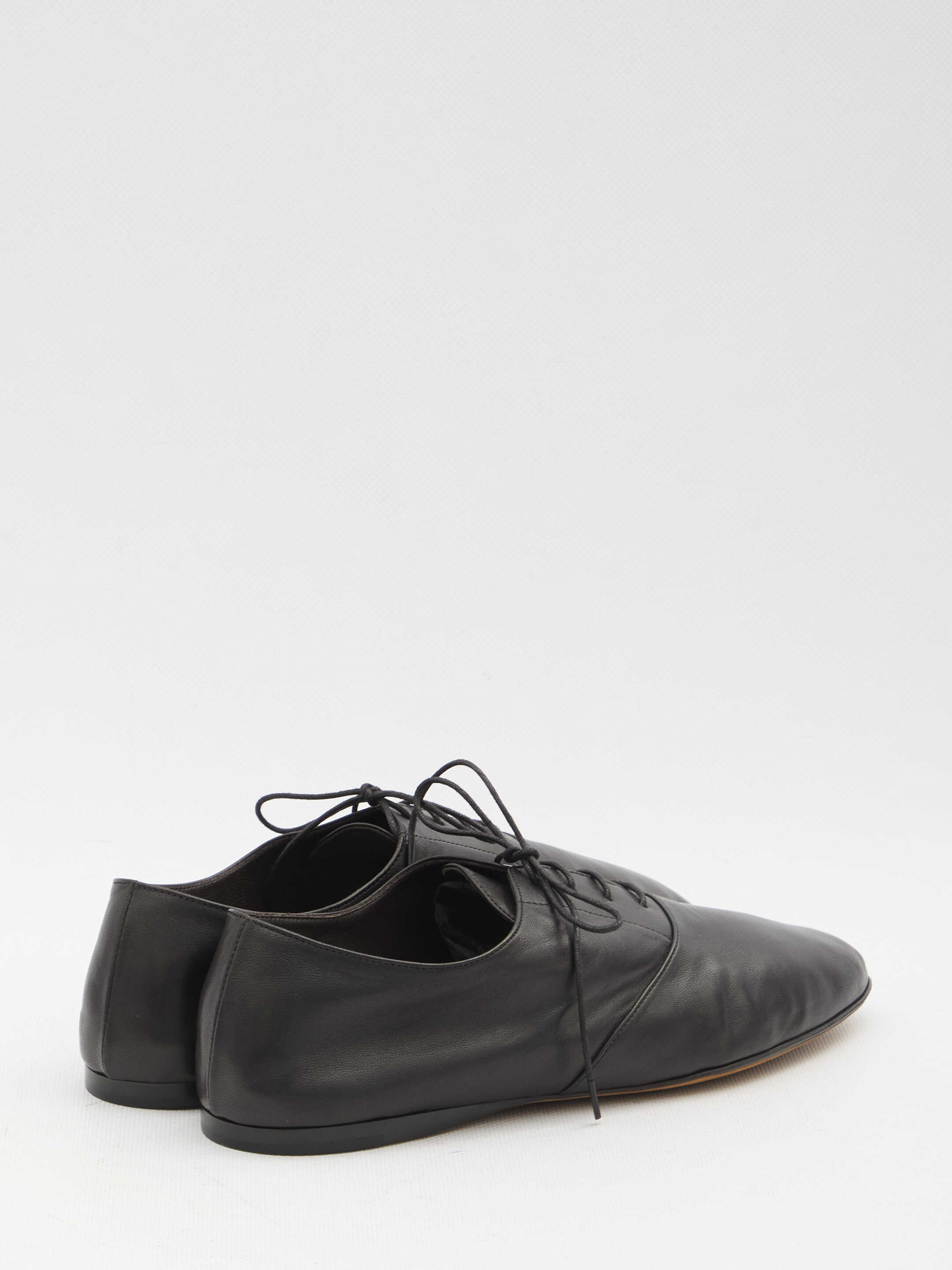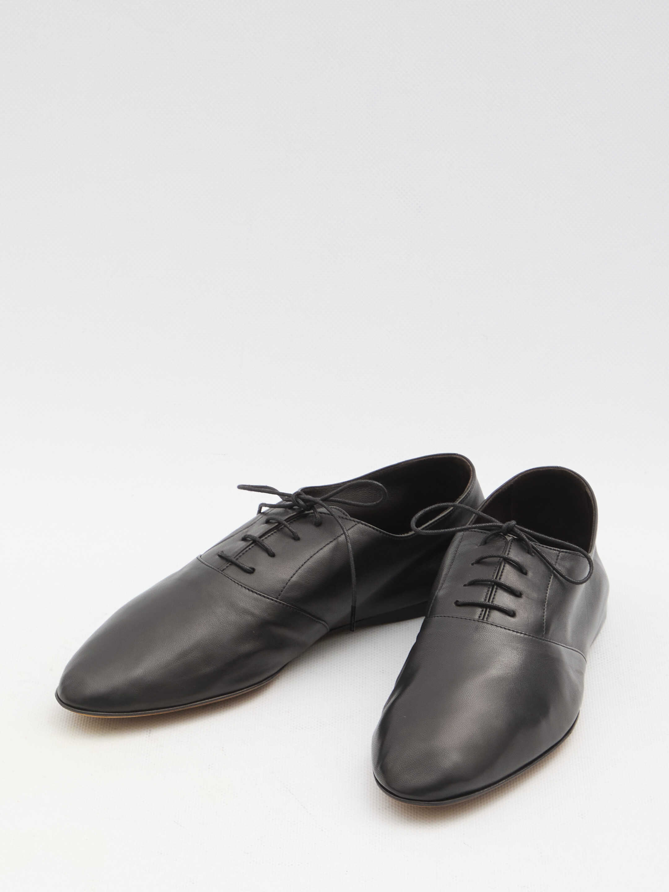 Awar lace-up shoes in black smooth nappa lambskin. They feature elongated almond toe, waxed cotton laces and leather sole. Dust bag included. Any leather imperfections are not to be considered manufacturing defects, but a peculiarity of the material.