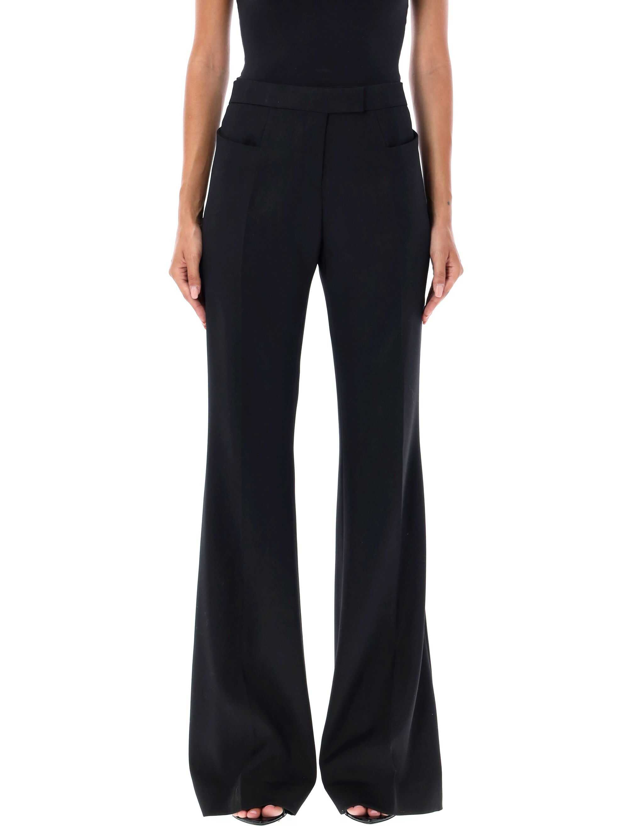 Upgrade your wardrobe with these stylish Flair pants by TOM FORD. Made with 100% virgin wool, these pants feature a high waist, zip and hook-and-loop closure, side patch pockets, rear welt pockets, and a wide leg bottom with a flared design. The model is 1.72 m tall and is wearing size 40. Perfect for any occasion, these pants are a must-have for fashion-forward women. Order now and experience luxury and elegance.