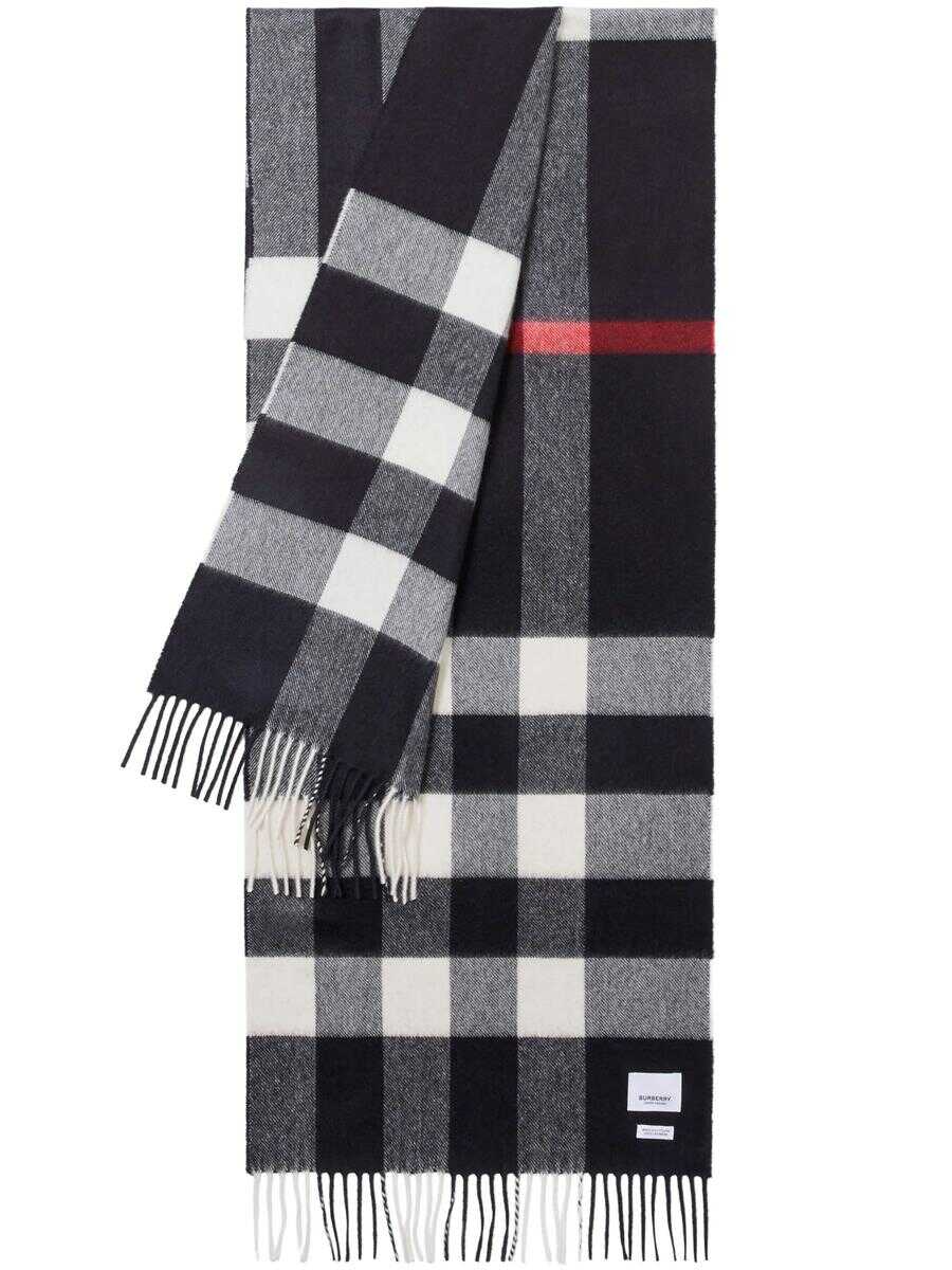 navy blue/multicolour cashmere knitted construction check pattern logo patches to the front fringed edge rectangle shape wraparound style