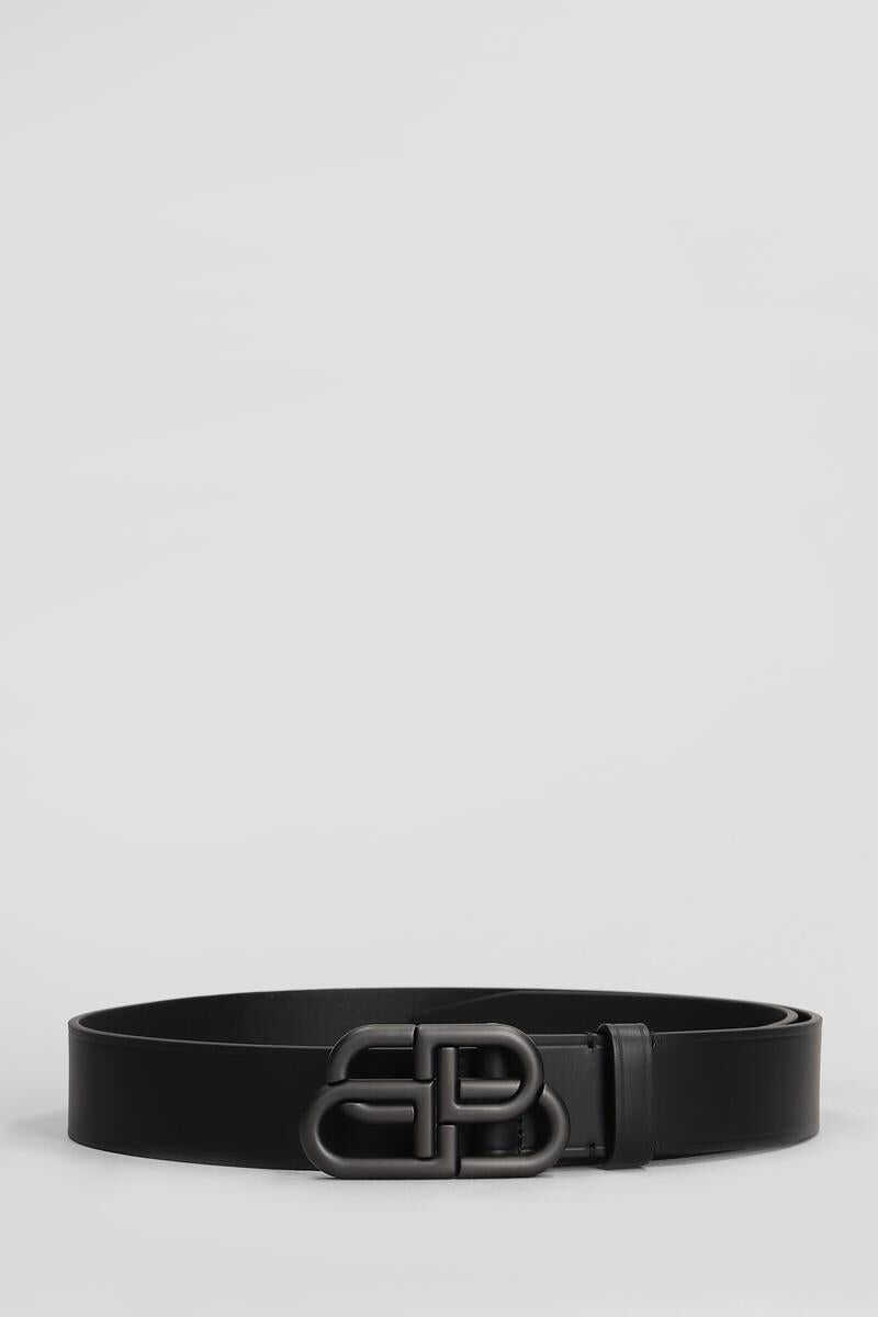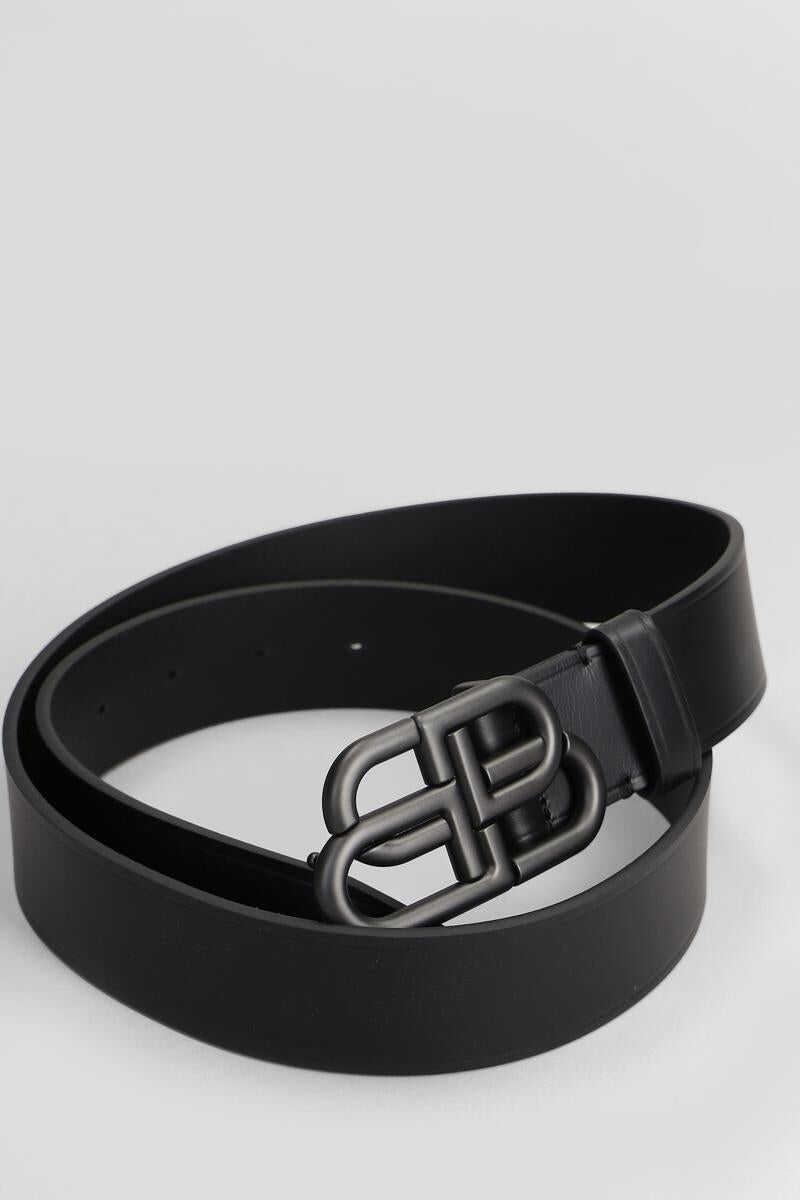 Belts in black leather, metallic logo, adjustable, 100% leather, Made in Italy
