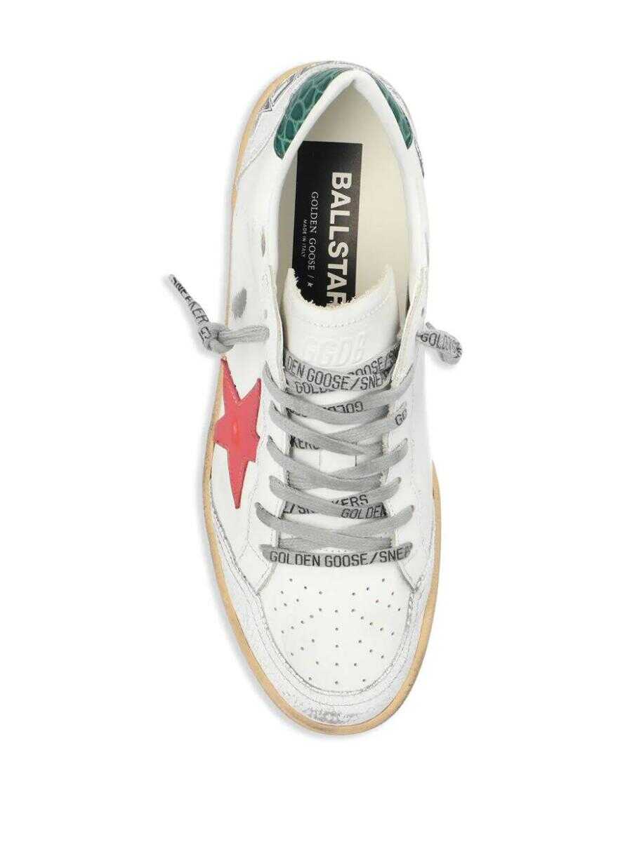 White/multicolour calf leather smooth grain distressed effect perforated detailing signature star patch to the sides logo stamp at side contrasting heel counter round toe perforated toebox front lace-up fastening branded insole contrasting rubber sole