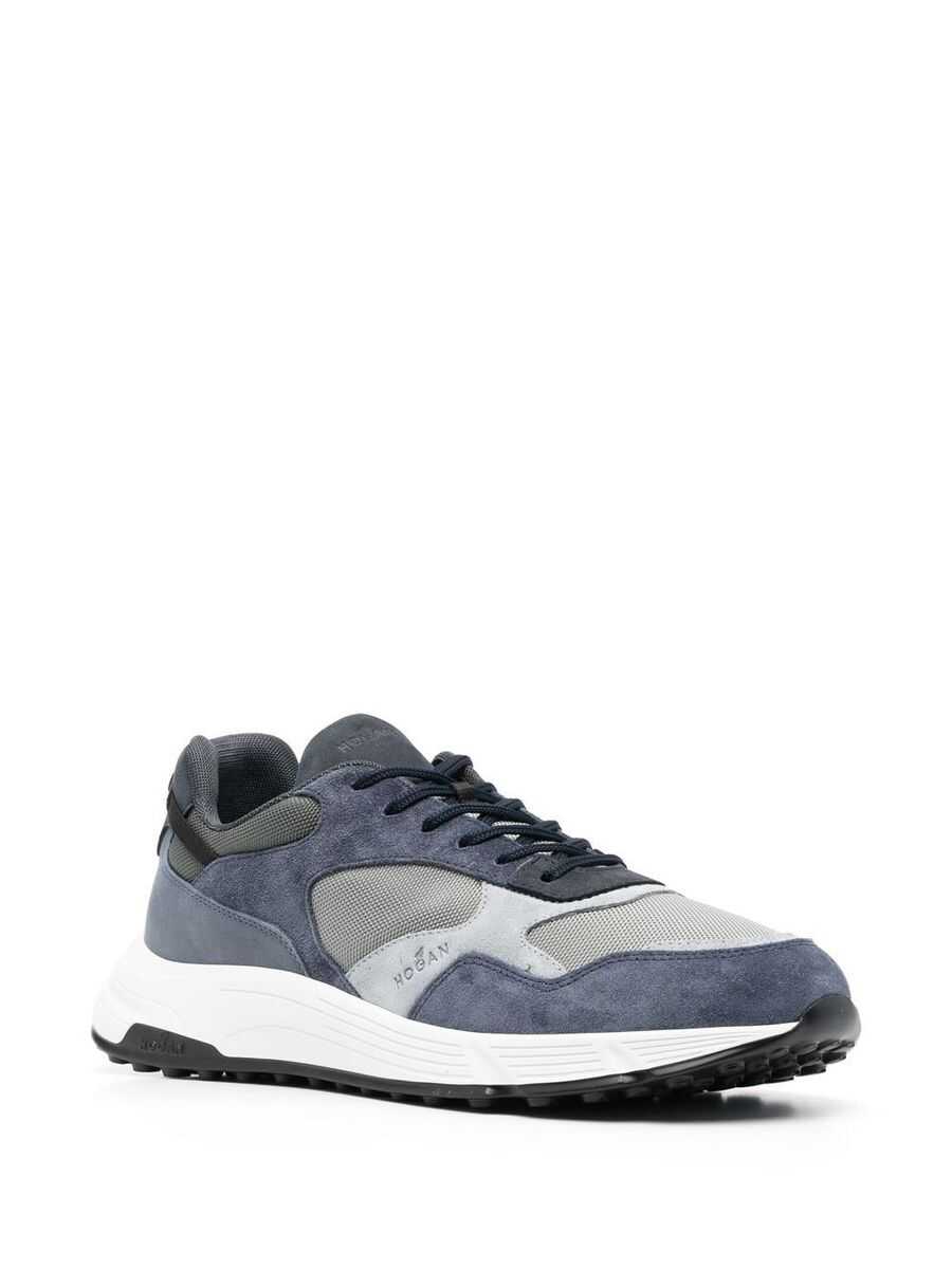 teal blue lambskin suede panelling colour-block design debossed logo to the side logo-debossed tongue nubuck detailing front lace-up fastening round toe memory foam insole flat rubber sole