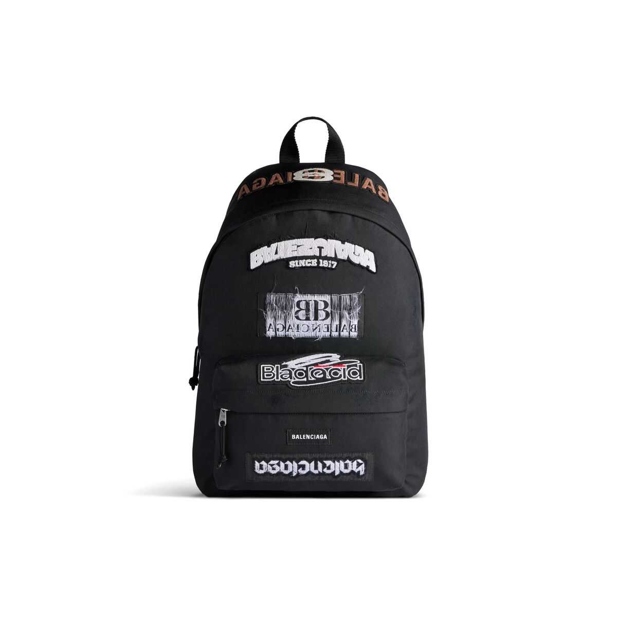 'Explorer' backpack in used-effect nylon, patches, outer zip pocket, zip closure, adjustable shoulder straps
