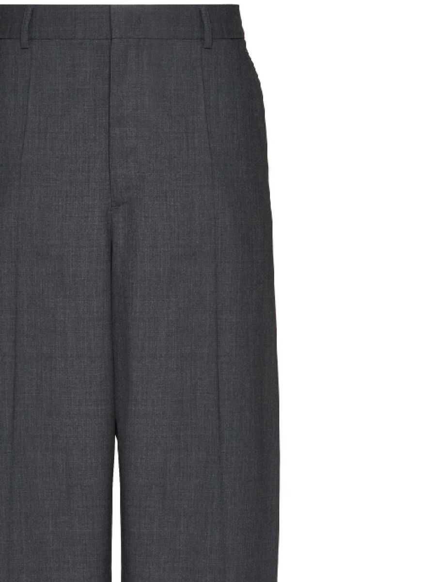 Valentino Garavani's loose-fit trousers made of grey wool. Featuring hook / button / zip closure, belt loops, multiple pockets and central pressed crease. Unlined interior.