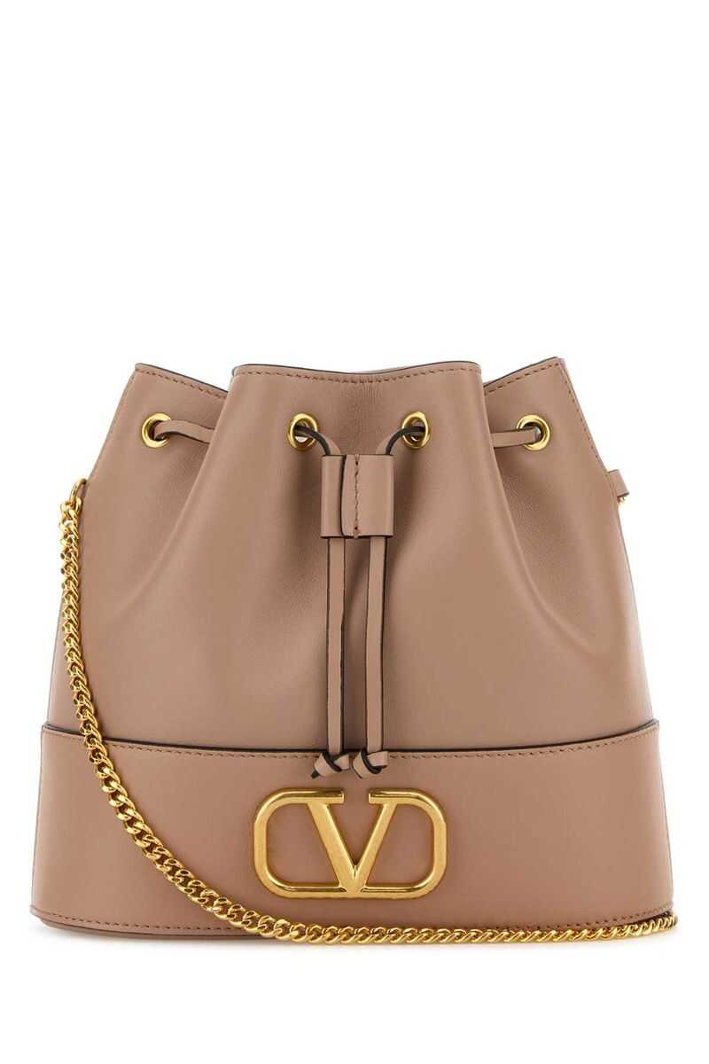 Powder pink leather bucket bag Width: 20 cm Height: 18 cm Depth: 8,5 cm Shoulder strap length: 56 cm