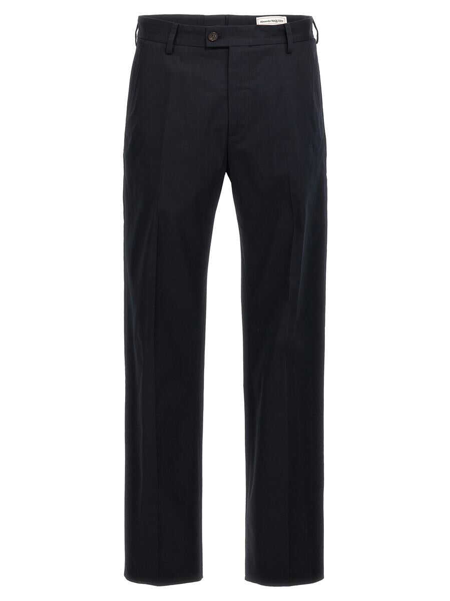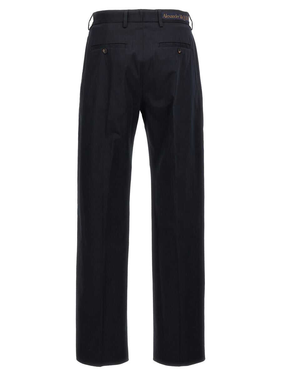 'Camera Strap Chino' cotton trousers, zip and button closure, pockets, logo tape detail at the waist