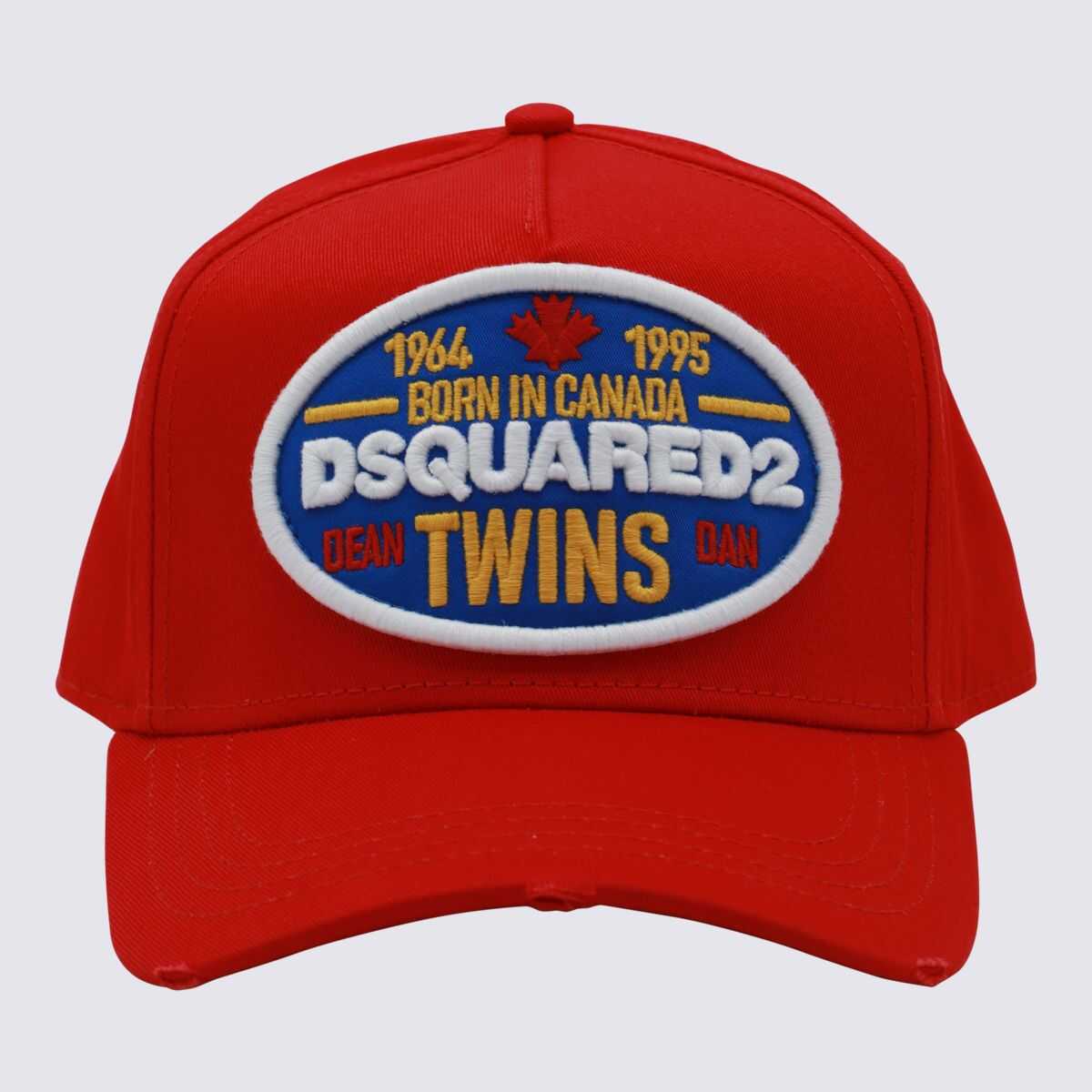 Red cotton baseball cap from Dsquared2 featuring rigid visor and stickers details.