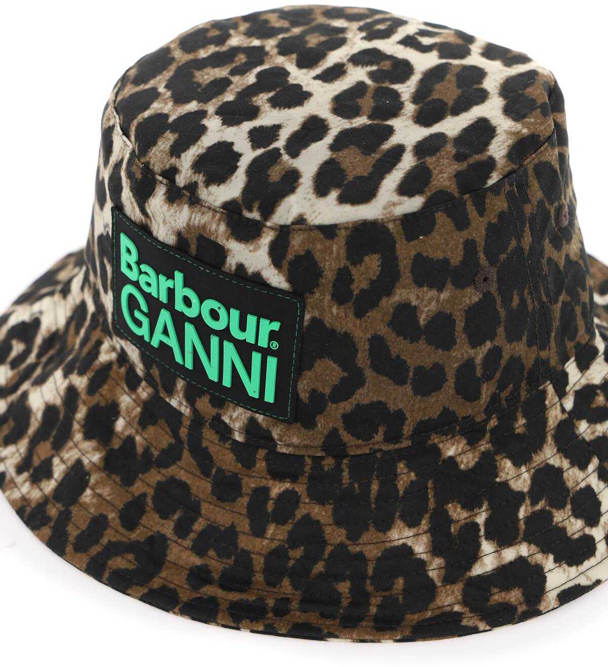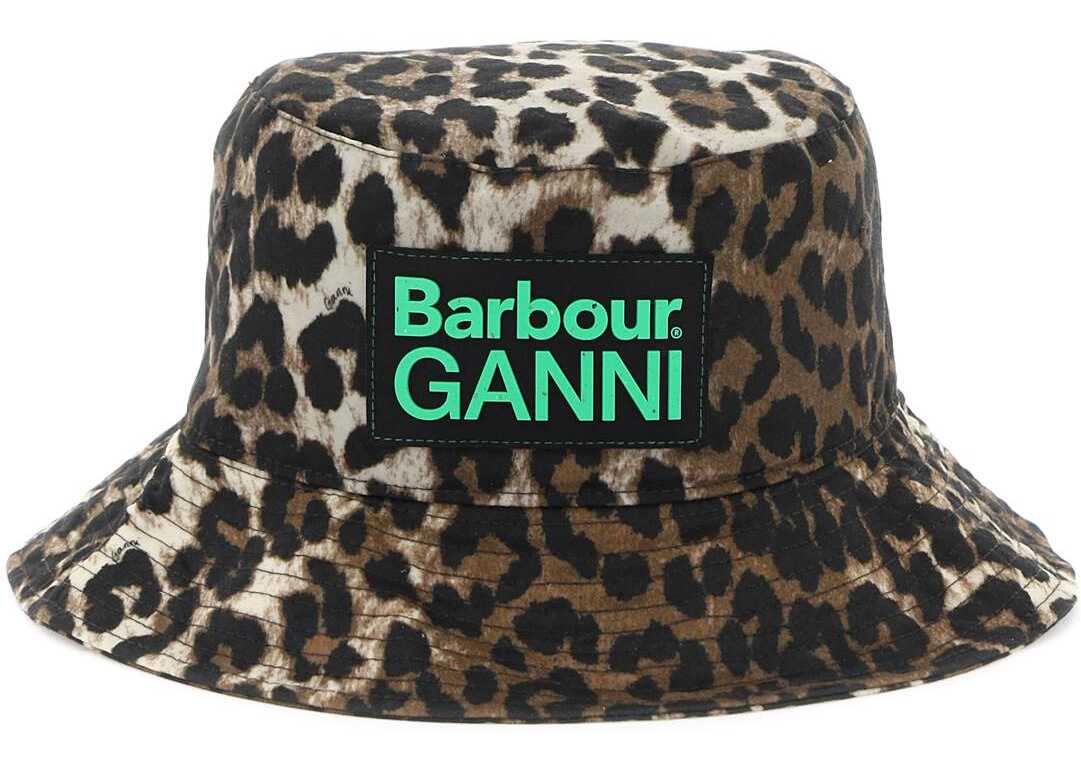 Bucket hat from the Barbour x GANNI collection made of waxed organic cotton featuring leopard print and is finished with front logo patch. Topstitched brim, embroidered eyelets, cotton-blend lining with iconic Check pattern. The pictured item si a size S/M.