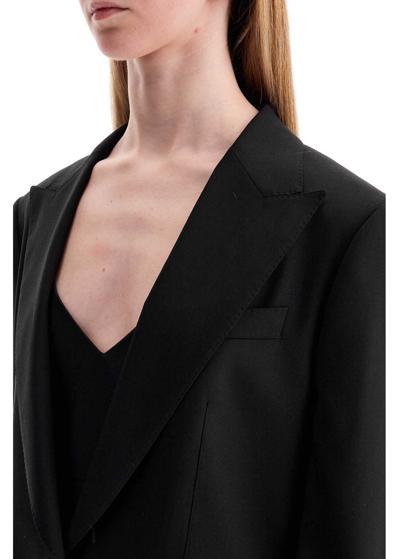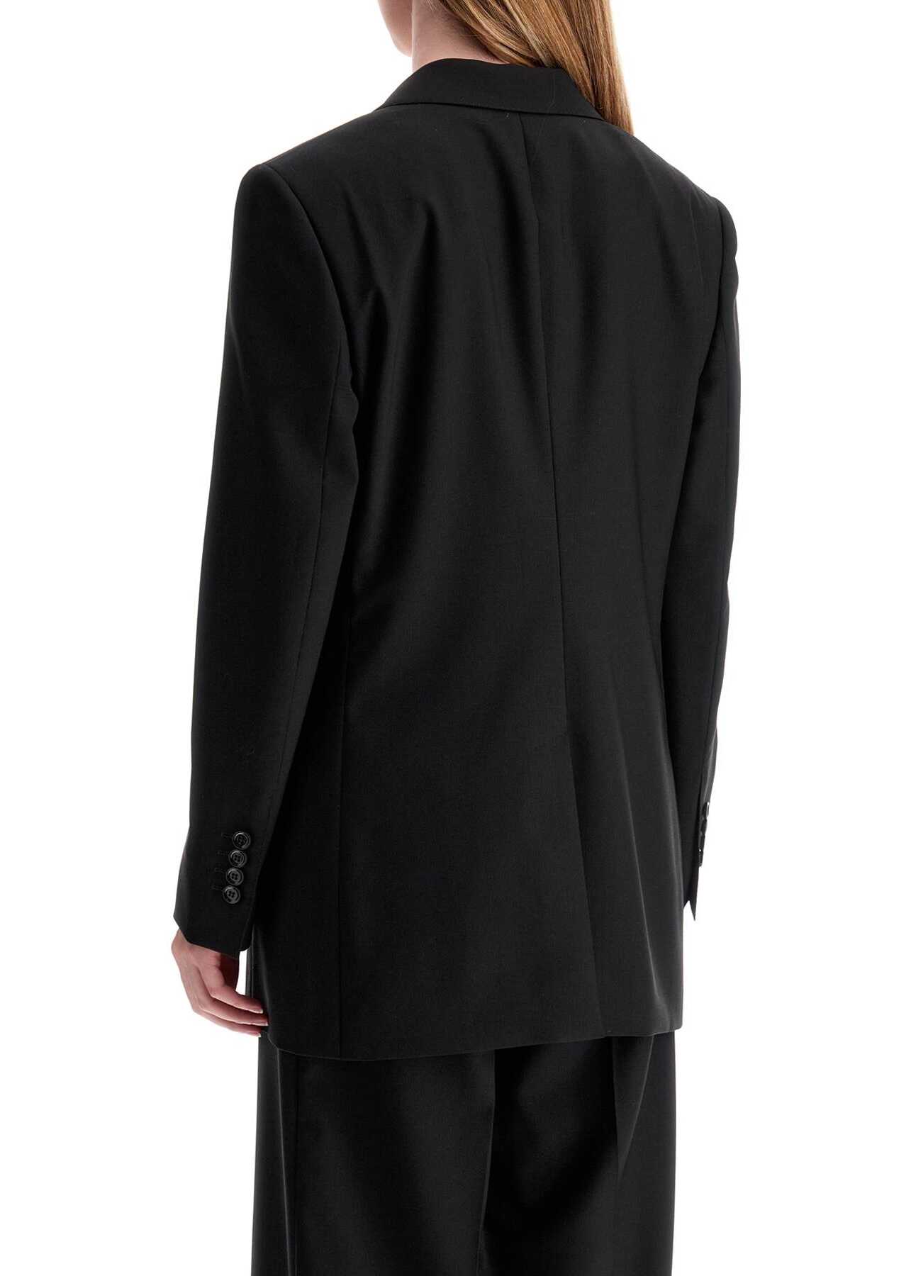 This single-breasted jacket from Dolce & Gabbana features a loose fit and is made of pure virgin wool with a silk lining. It has peak lapels, a two-button closure, a slanted chest pocket, front pockets with flaps, and a back vent. The model is 177 cm tall and wears an Italian size 42.