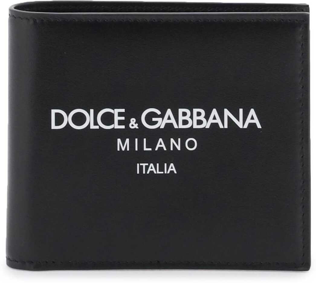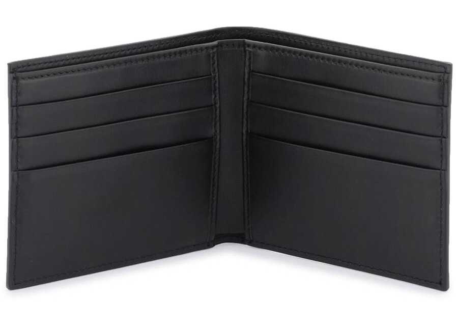 Leather wallet by Dolce & Gabbana with contrasting lettering logo printed on front. Interior with bill compartment, six credit card slots and two slit pockets.