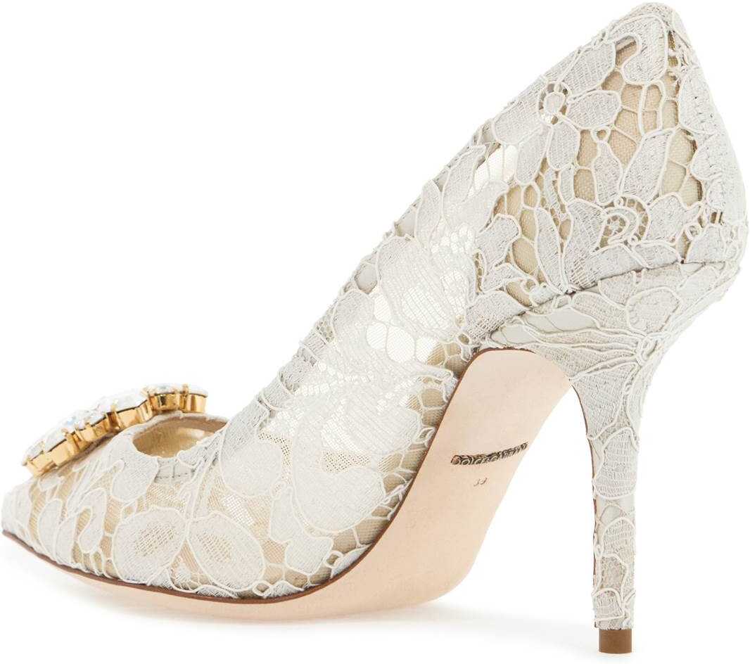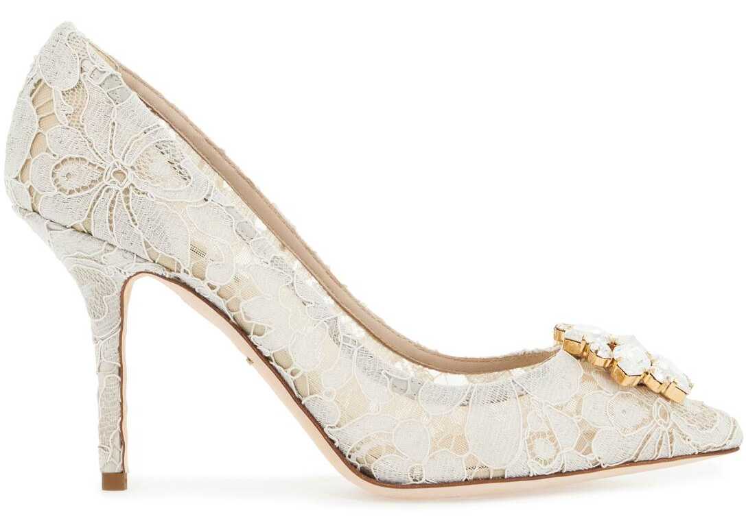 Bellucci pumps by Dolce & Gabbana crafted in charmant lace with a crystal flower on the vamp. Leather and mesh lining, leather sole.