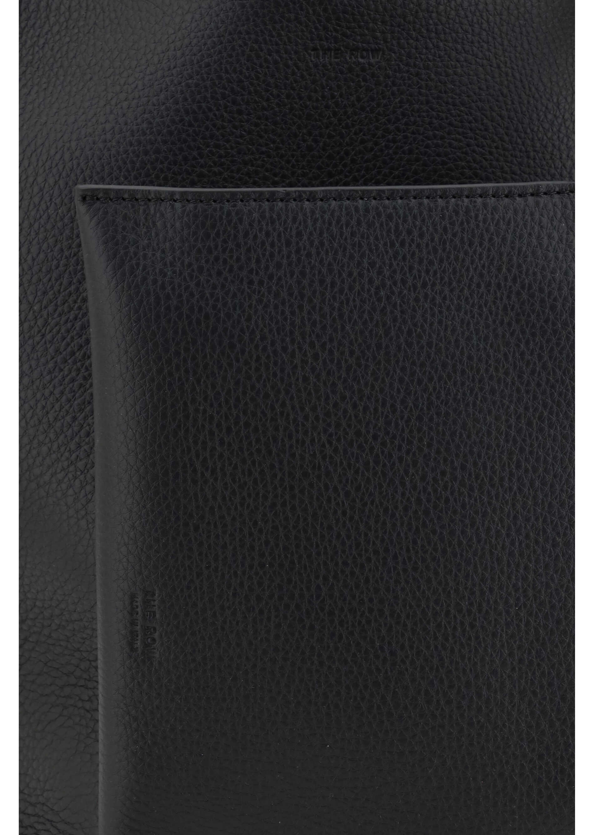 Calfskin Park Tote Bag by The Row, wide top handles, iconic brand monogram printed in pressure and contrast on the front, model with matching internal pouch, grained leather design, single internal compartment.