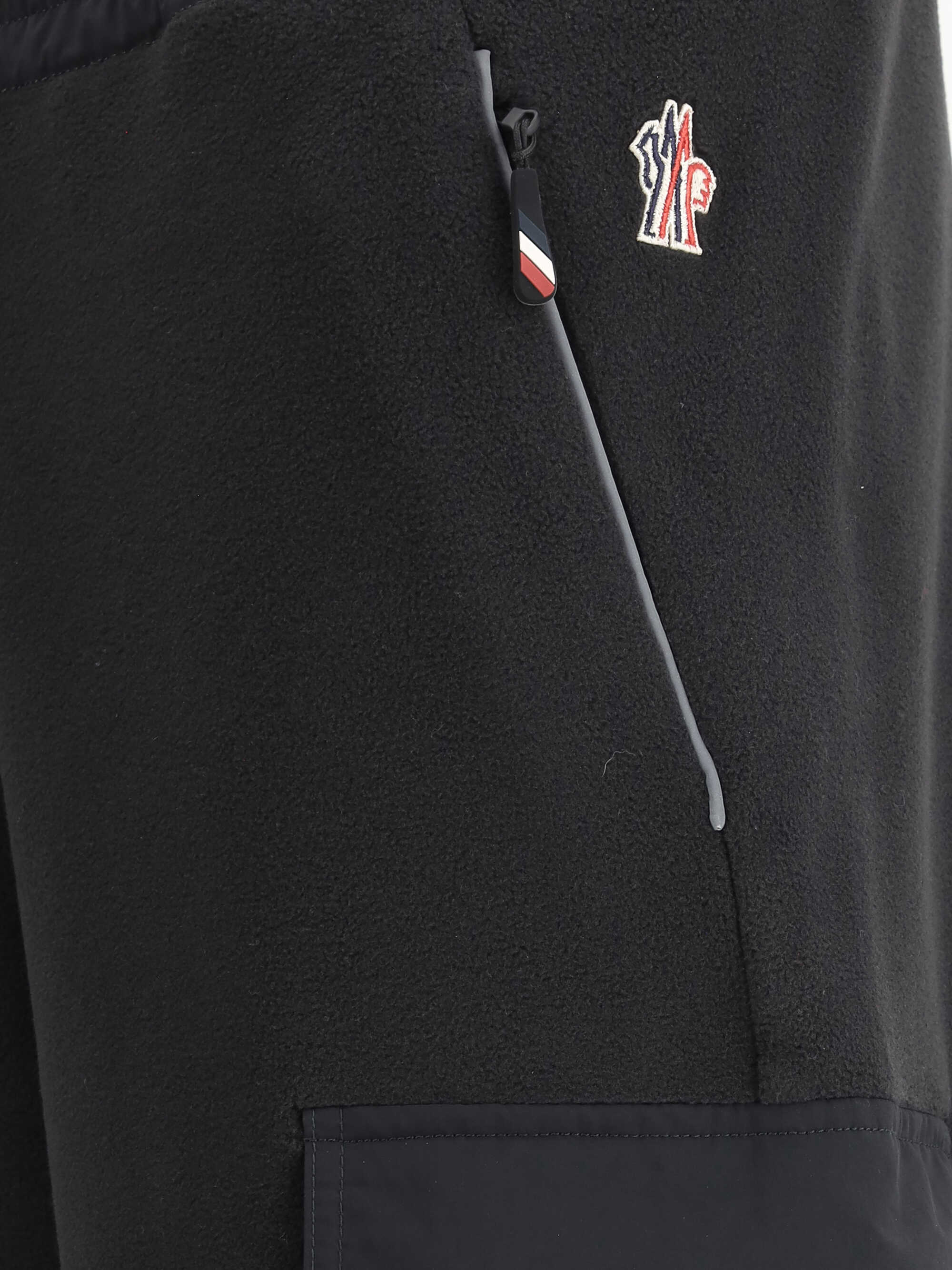 Sweatpants by Moncler Grenoble, jogger model, soft fleece design, elasticated waistband with drawstring, two zippered side welt pockets, two patch cargo pockets on side panels with iconic tone-on-tone brand monogram detail, iconic brand logo patch applied on front, monochrome pattern, regular fit.