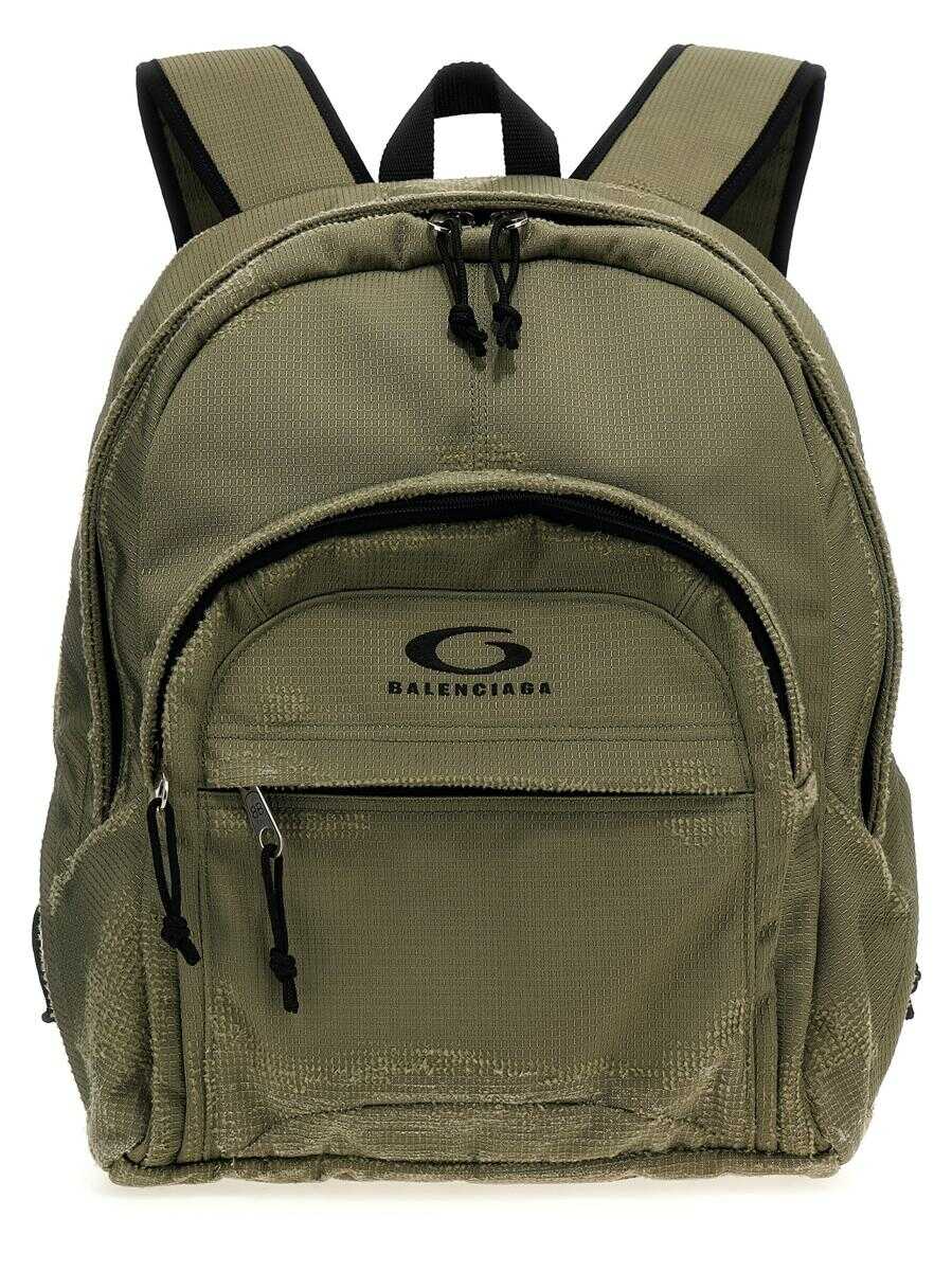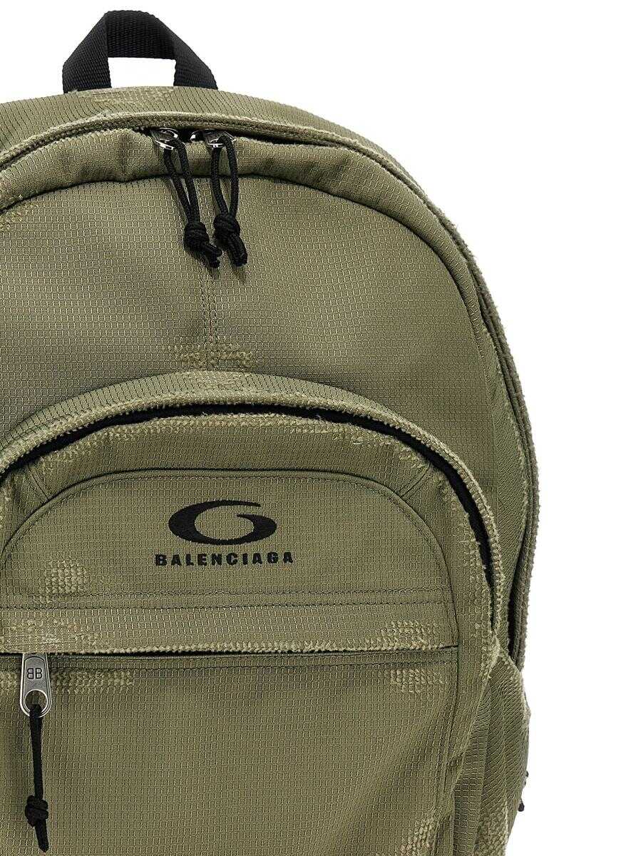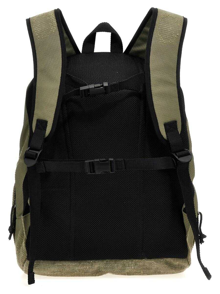 'Backback' top in ripstop technical fabric with used-effect details, front logo embroidery, zip closure, front zip pocket, adjustable shoulder straps, bare back with adjustable buckle