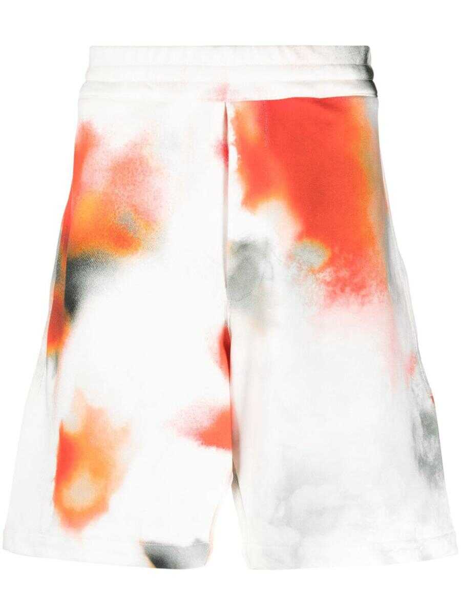 multicolour cotton tie-dye pattern mid-rise elasticated waistband embroidered logo to the rear rear zip-fastening pocket knee-length