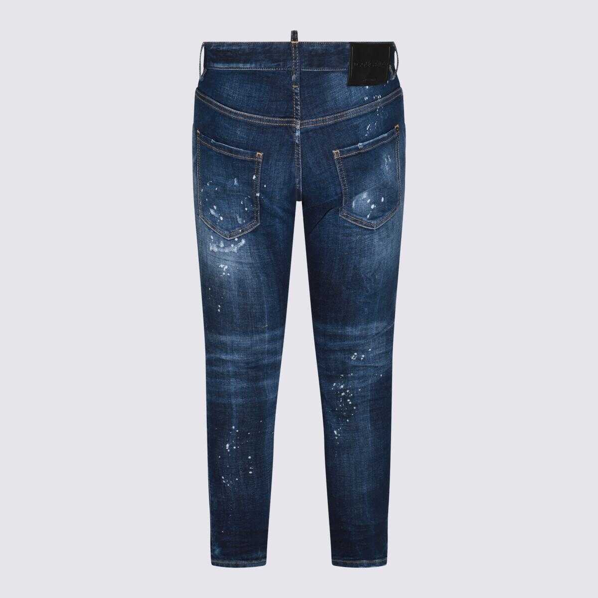 Blue denim cotton jeans from DsQuared2 featuring frontal zip and button fastening, belt loops, frontal logo patch, regular vestibility and pockets.