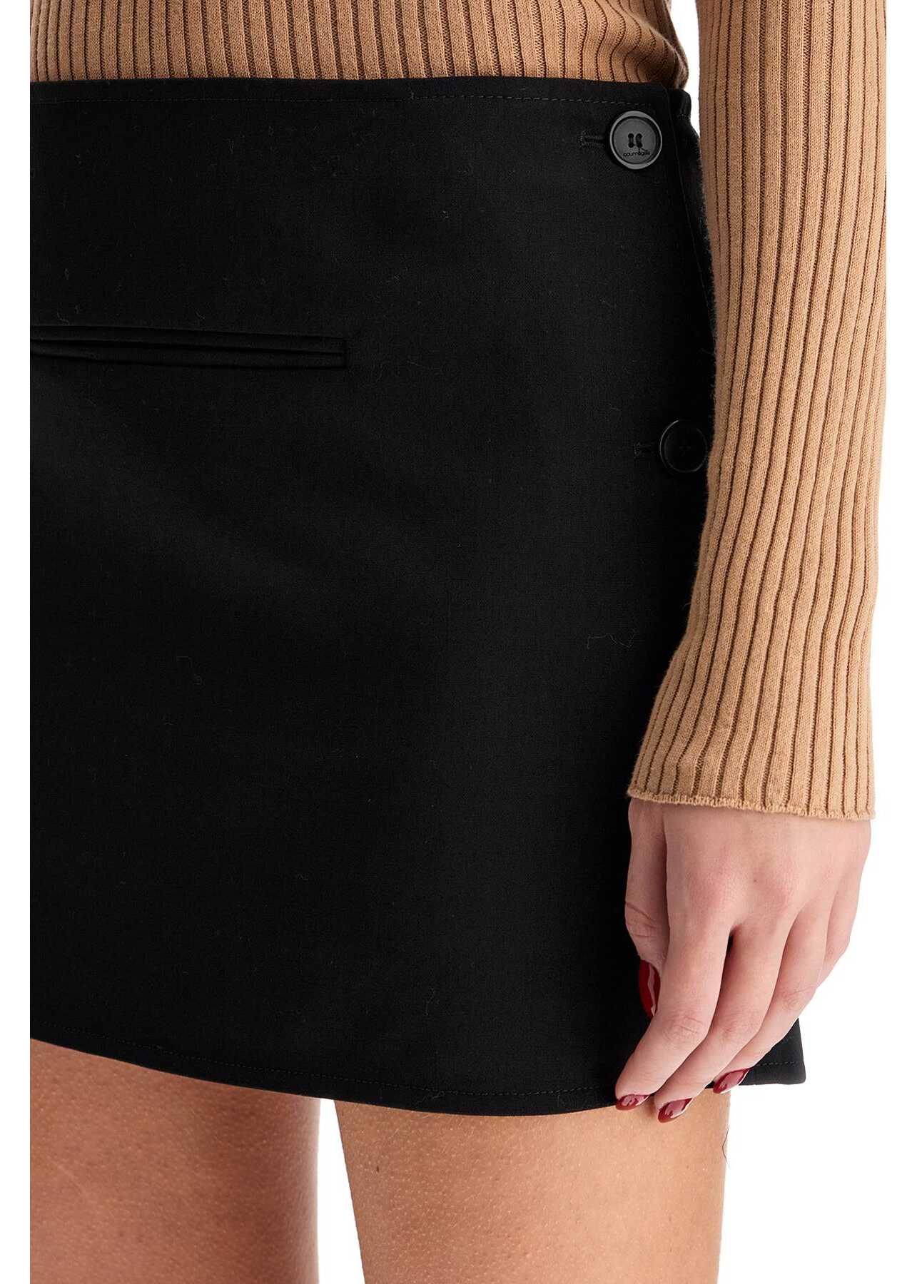 The Courreges miniskirt is made of a wool blend fabric with a side slit, front slit pocket and side closure with buttons. The model is 177 cm tall and wears size FR 34.