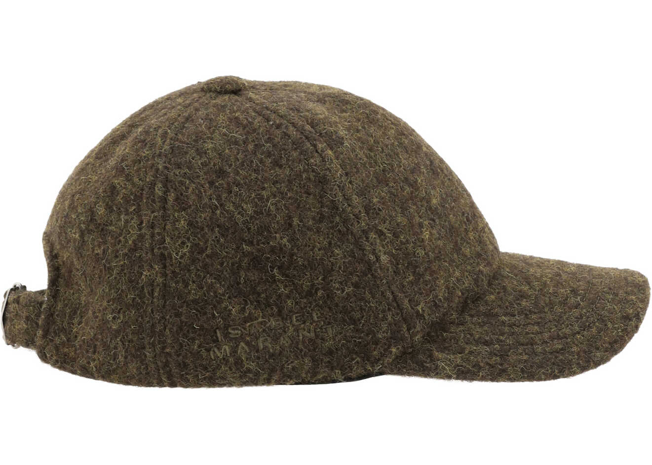 Wool Tomas Baseball Hat by Isabel Marant, adjustable buckle closure at back, iconic brand monogram embroidered tone-on-tone on side.