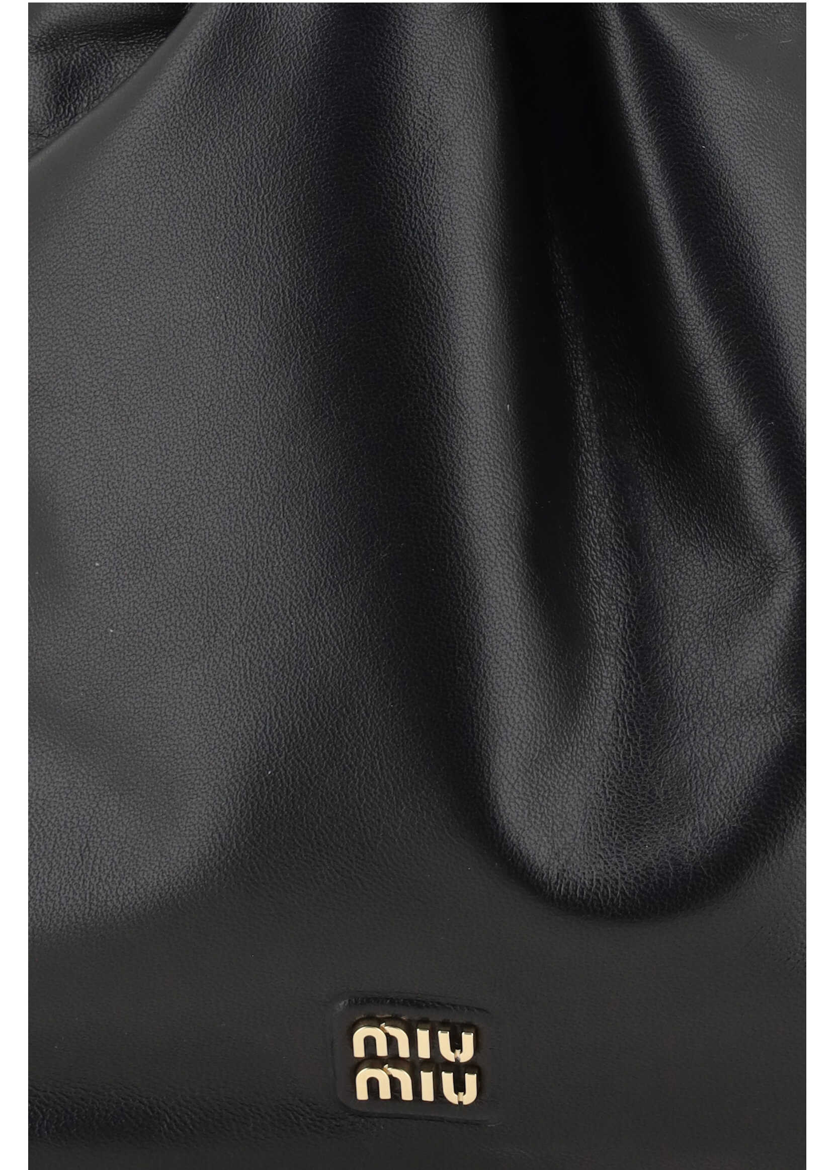 Leather Clutch Bag by Miu Miu, drawstring closure at top, three-dimensional iconic brand monogram plaque applied on front, single interior compartment, envelope design.