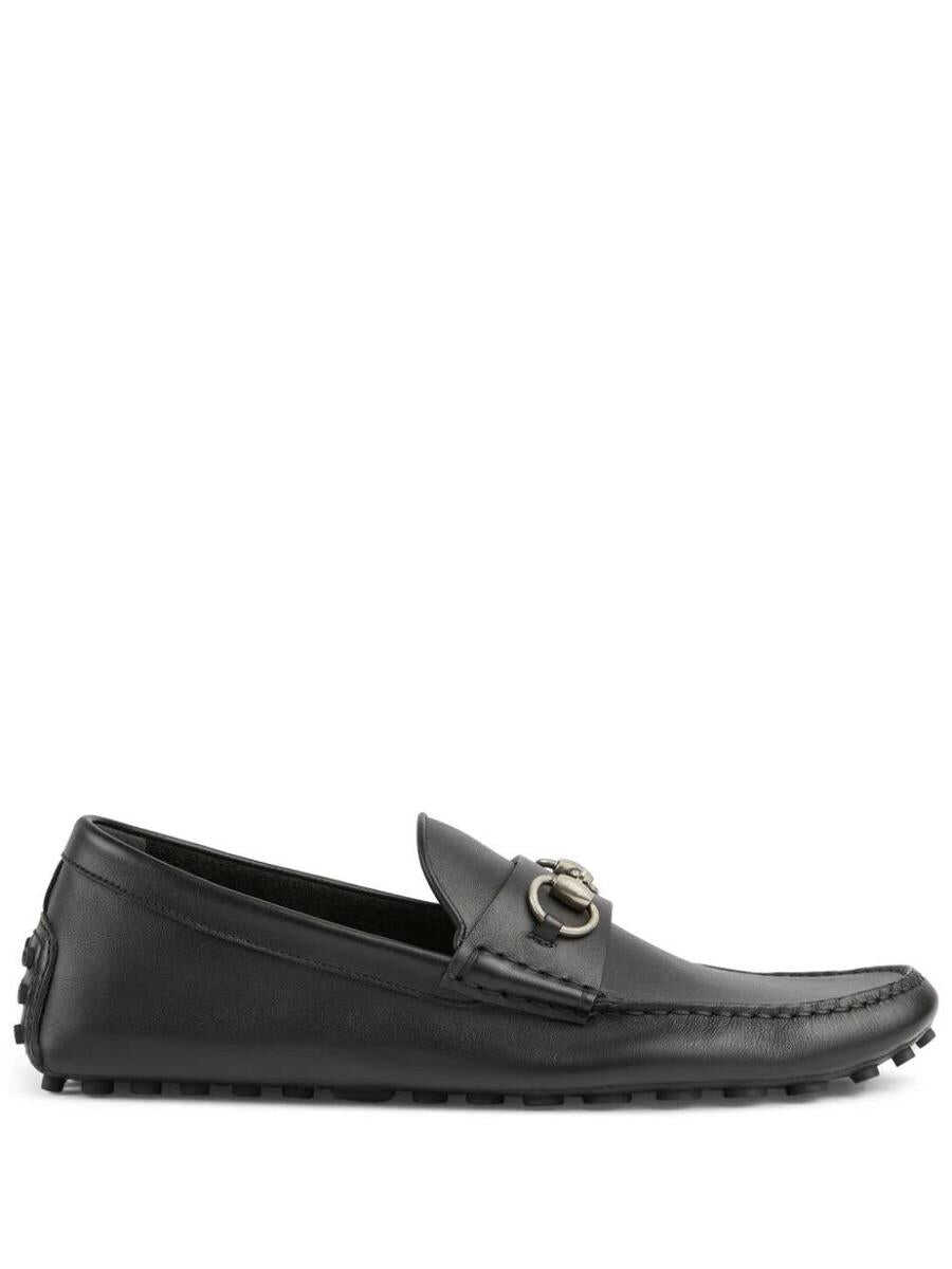 Gucci's driver loafers crafted in black smooth leather. Featuring a round-toe silhouette, leather lining and pebbled rubber sole. The design is completed by the iconic silver-tone metal Horsebit.