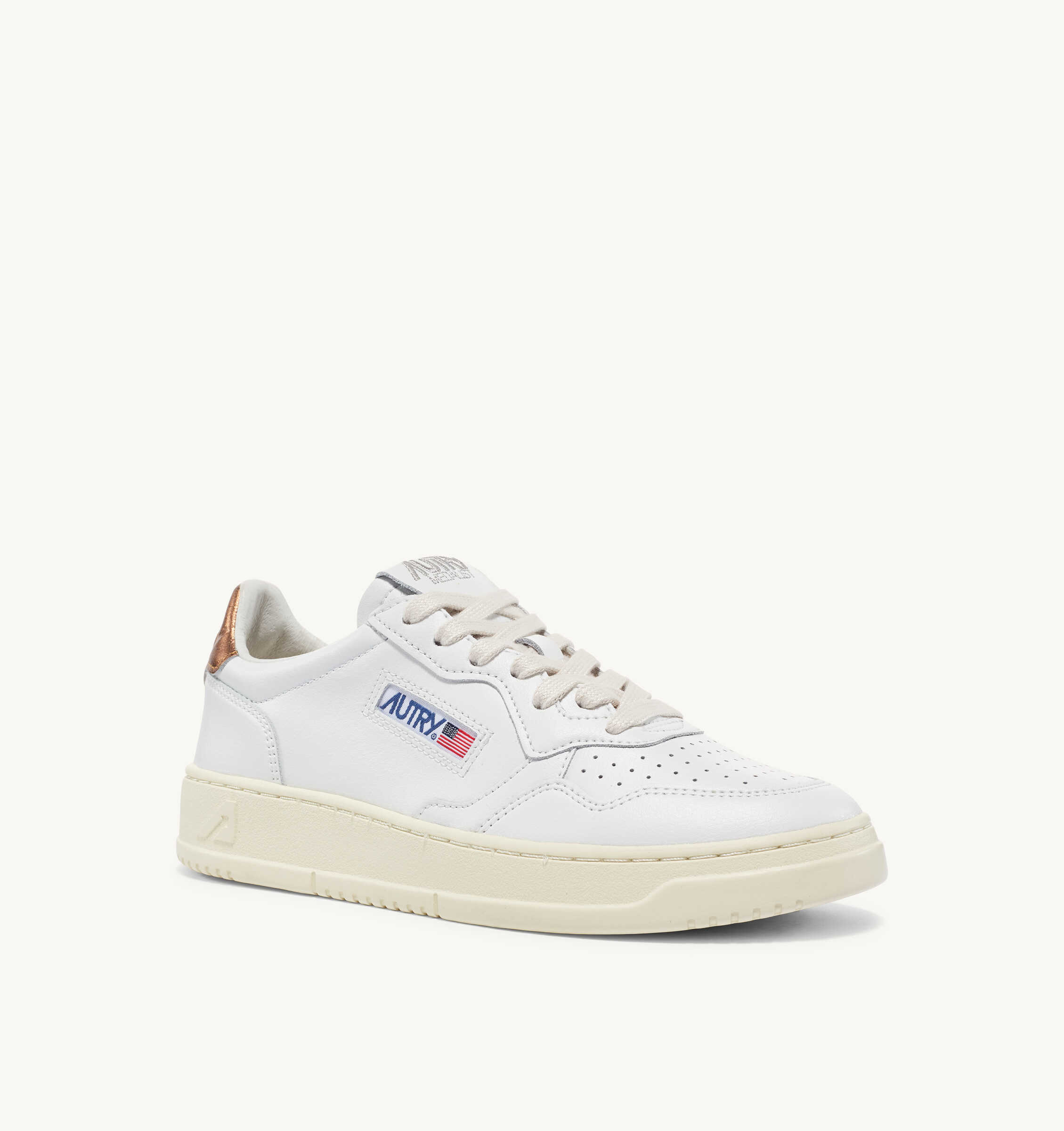 Autry leather sneakers, front perforations, side logo detail, and bronze tab on the back.