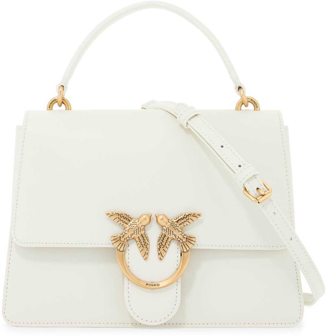 Love One Top Handle Classic Light handbag by Pinko made of leather with closure decorated with the iconic Love Birds Diamond Cut metal buckle. Suede microfiber interior with one open pocket and one zippered pocket. Adjustable and detachable shoulder strap and antiqued gold-finished metalware.