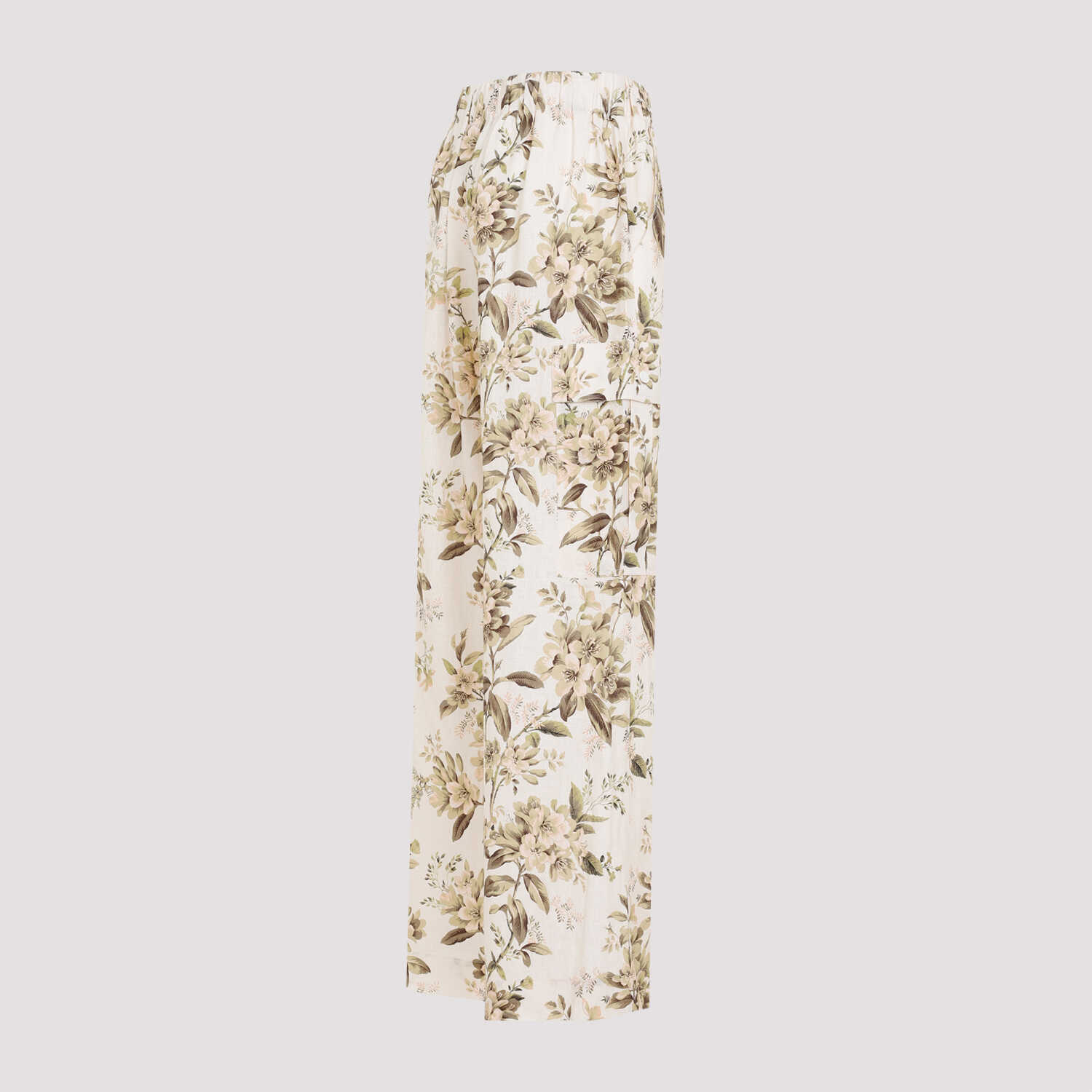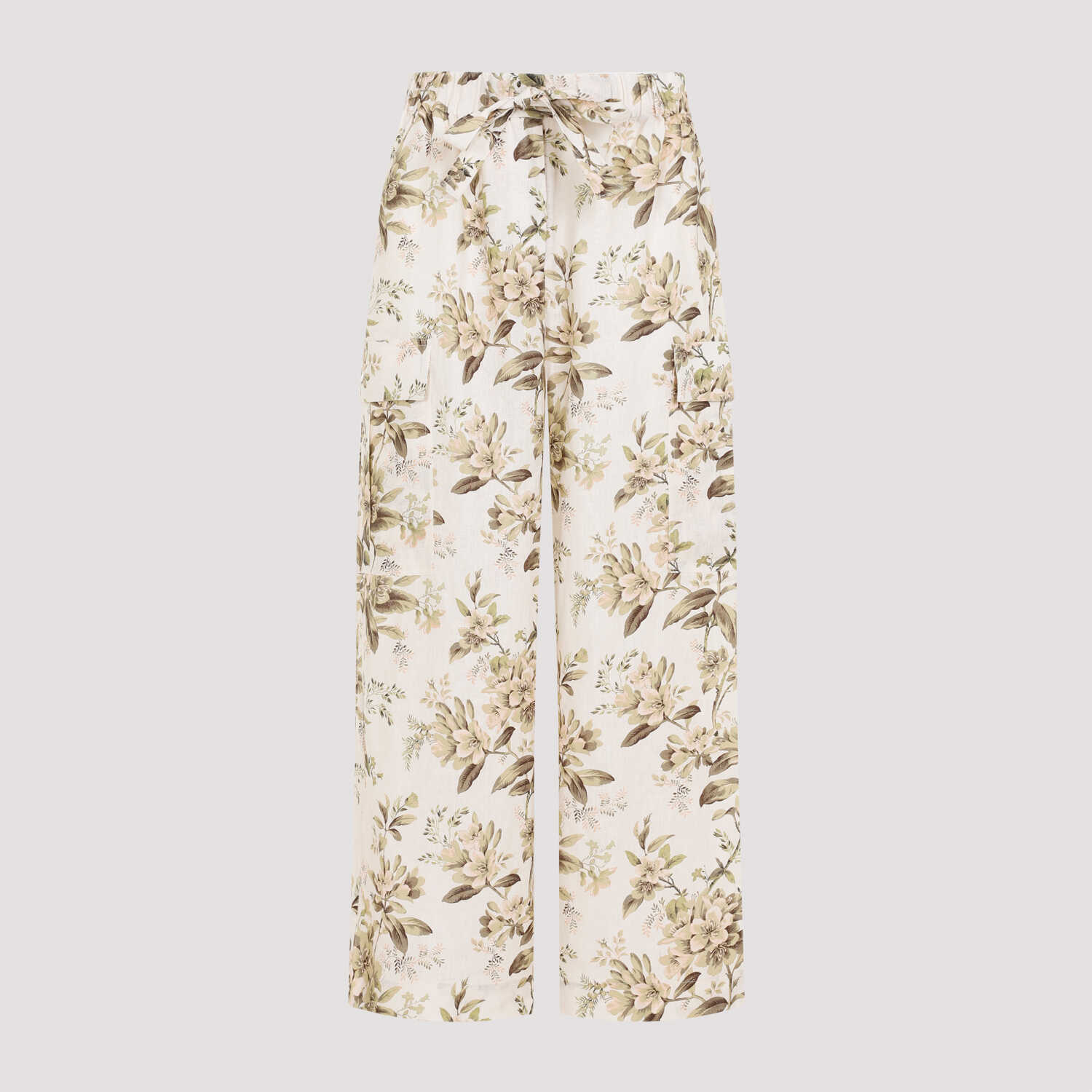 Add a touch of elegance to your wardrobe with these stunning multicolour linen pants by ZIMMERMANN. Featuring an elasticated waist, adjustable drawstring, and side pockets, these wide-leg pants offer both style and comfort. The cream white background with a green sage floral pattern adds a touch of sophistication to any outfit. Perfect for any occasion, these pants are a must-have for any fashion-forward woman. Elevate your look with ZIMMERMANN 1290PSS245.
