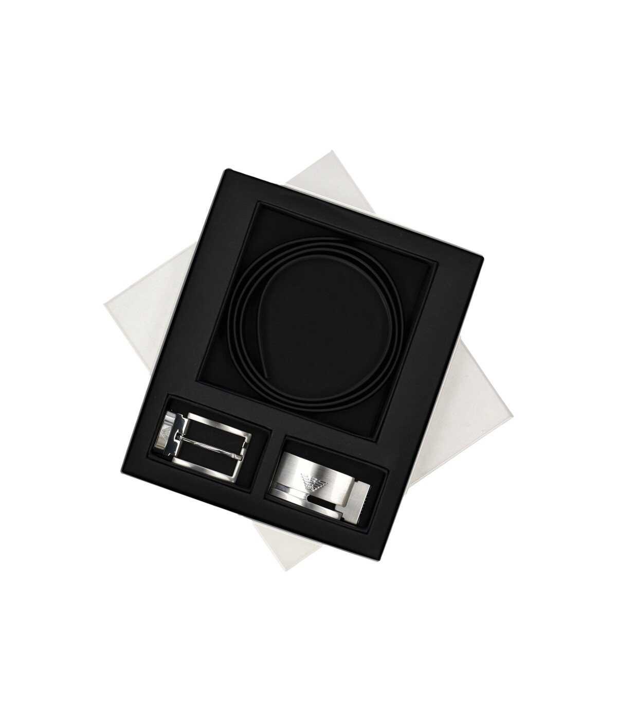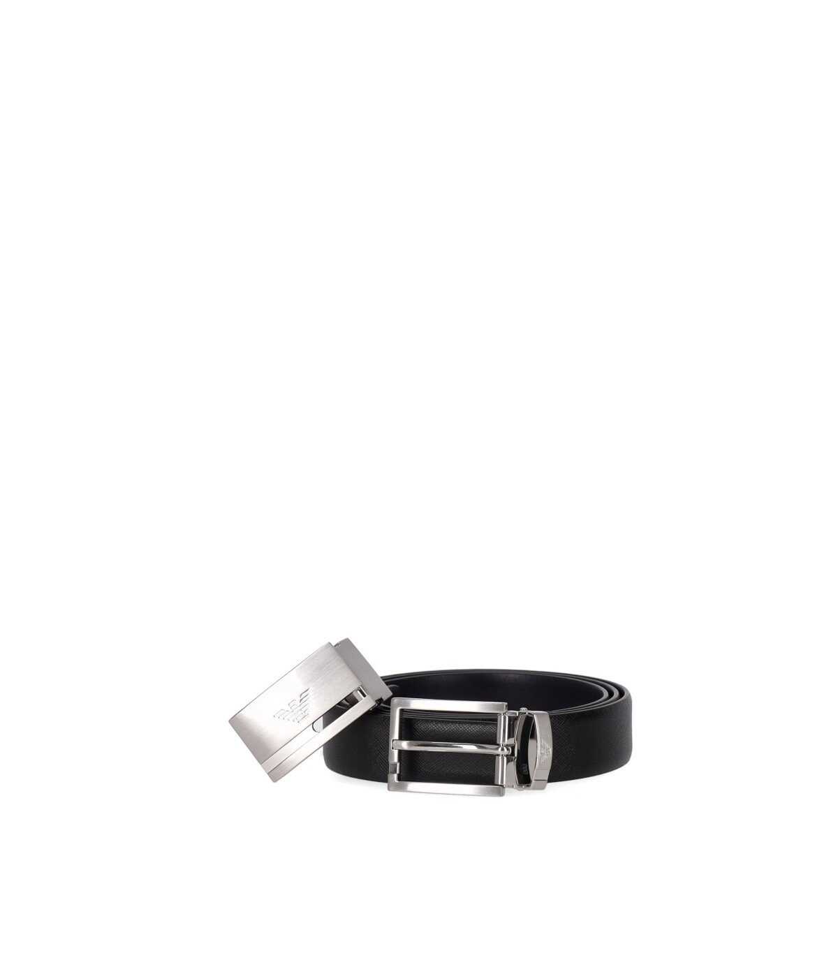 Emporio Armani belt made of bovine leather finished with saffiano print, featuring an interchangeable buckle: with an iconic logo for more sophisticated looks, simpler in silver metal for more classic looks. Size 120 x 3 cm.