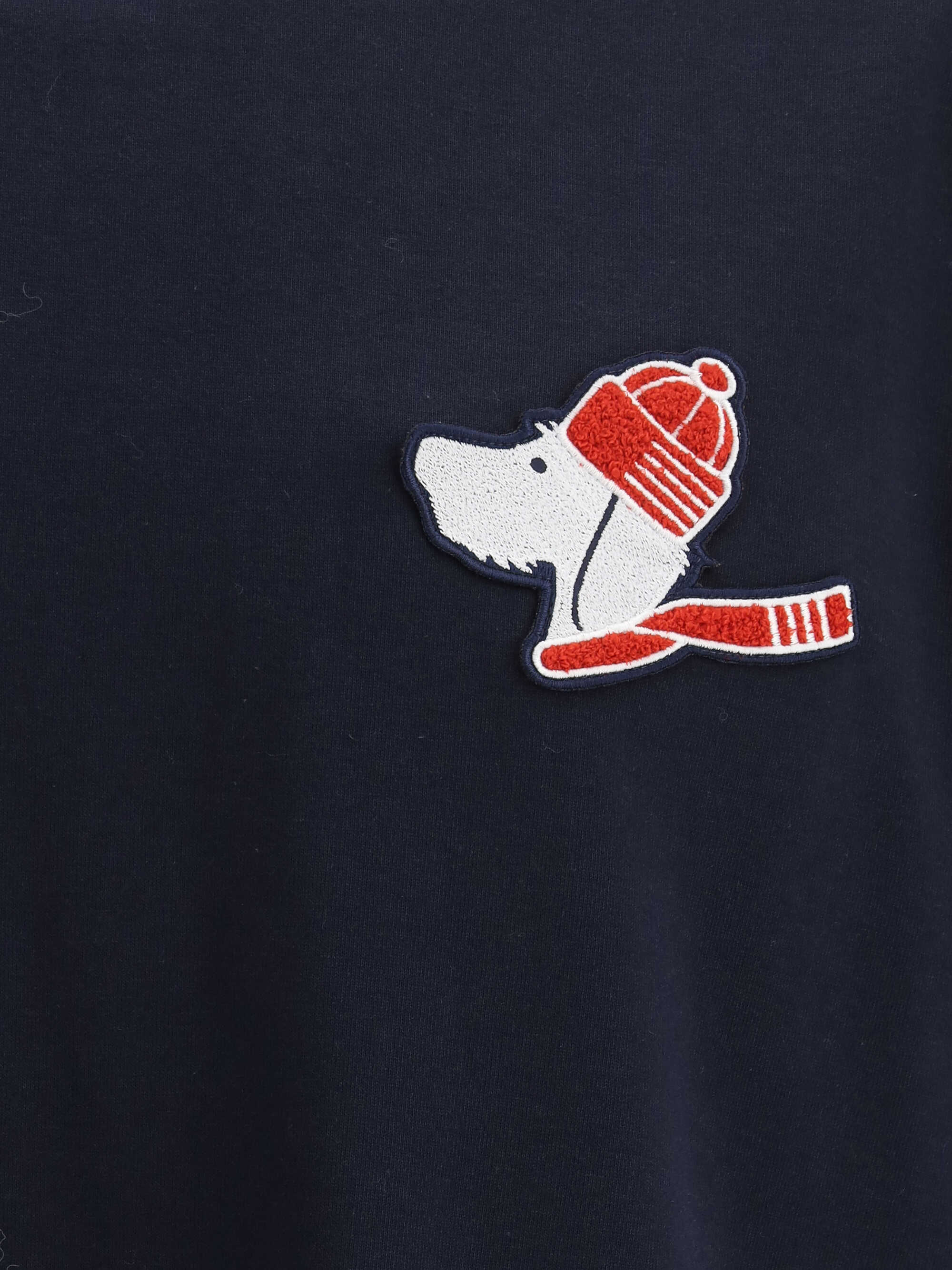 Cotton Hector T-shirt by Thom Browne, ribbed crew neck, asymmetrical hem, patch with iconic Hector dog logo applied to front, patch with iconic brand monogram applied to front, monochrome pattern, regular fit.