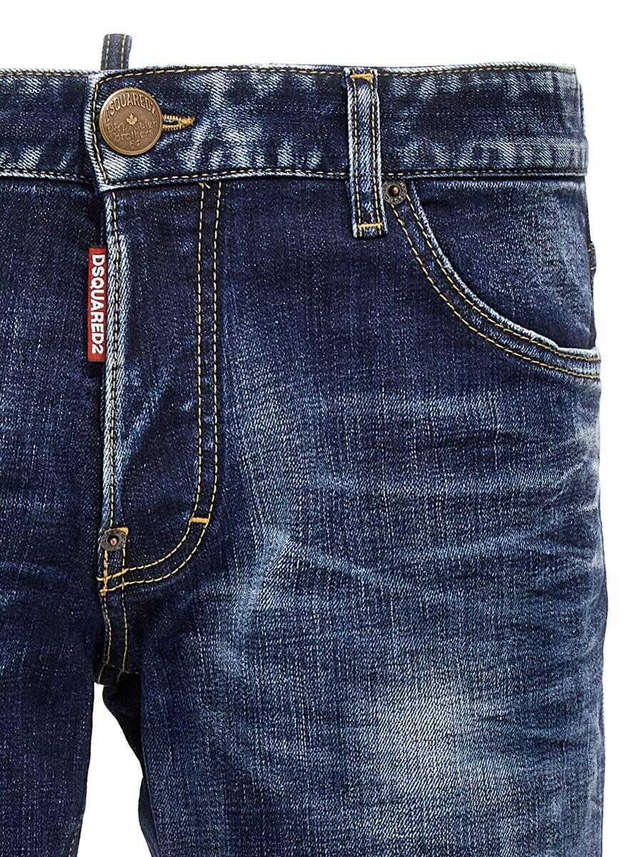 Slim' cotton denim jeans with button closure, five pockets, patch, back logo print and used-effect details