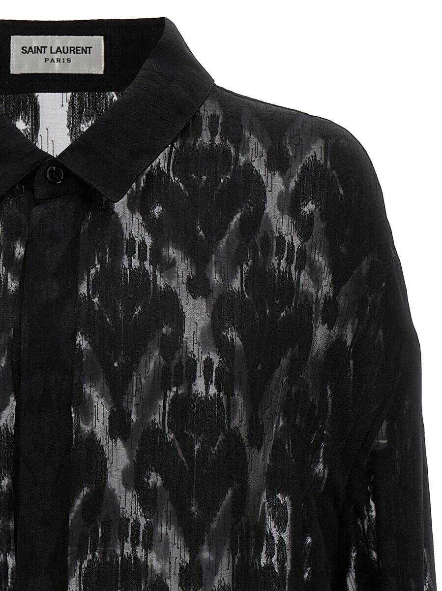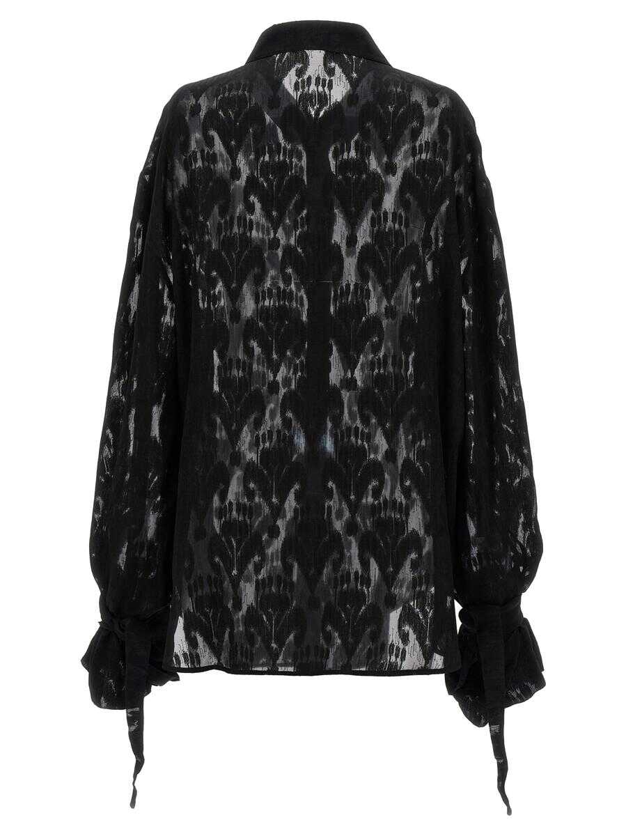 Transparent silk blend shirt with all over patterned pattern, button closure, long sleeves and tieable cuffs