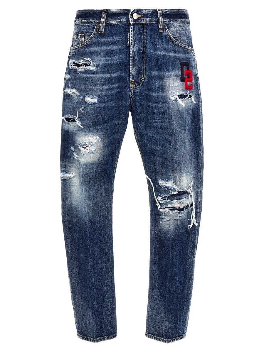 'Bro' denim jeans with breaks and lightening, slightly wide leg, button closure