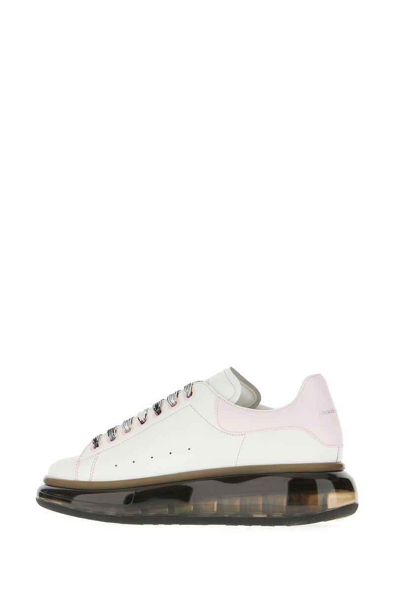 White leather sneakers with pink leather heel