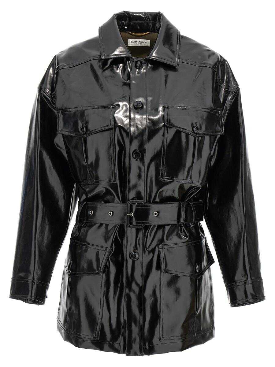 'Sahariana' coated cotton jacket with button closure, adjustable belt at the waist, pockets, long sleeves
