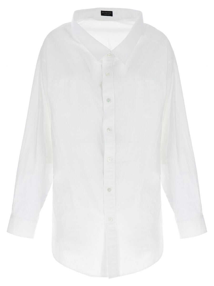 Off-the-shoulder style cotton poplin shirt with button closure and long cuffed sleeves