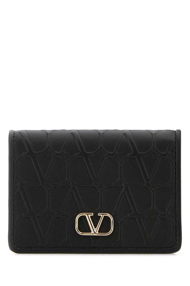 Black leather wallet Width: 10,5 cm Height: 8 cm Depth: 2 cm