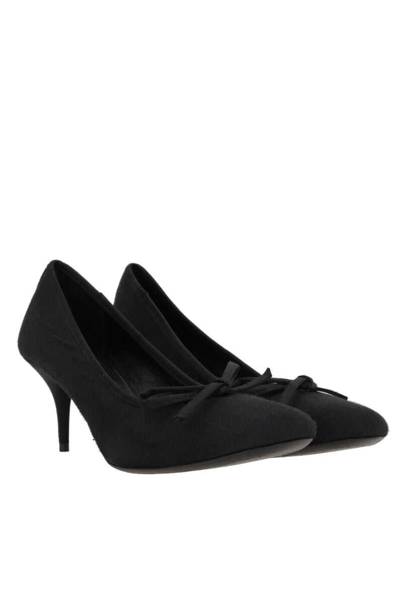 Balenciaga pumps crafted from black satin with a worn-out effect. Featuring a rounded toe with a decorative bow, leather lining and leather sole. The design is completed with a covered stiletto heel.